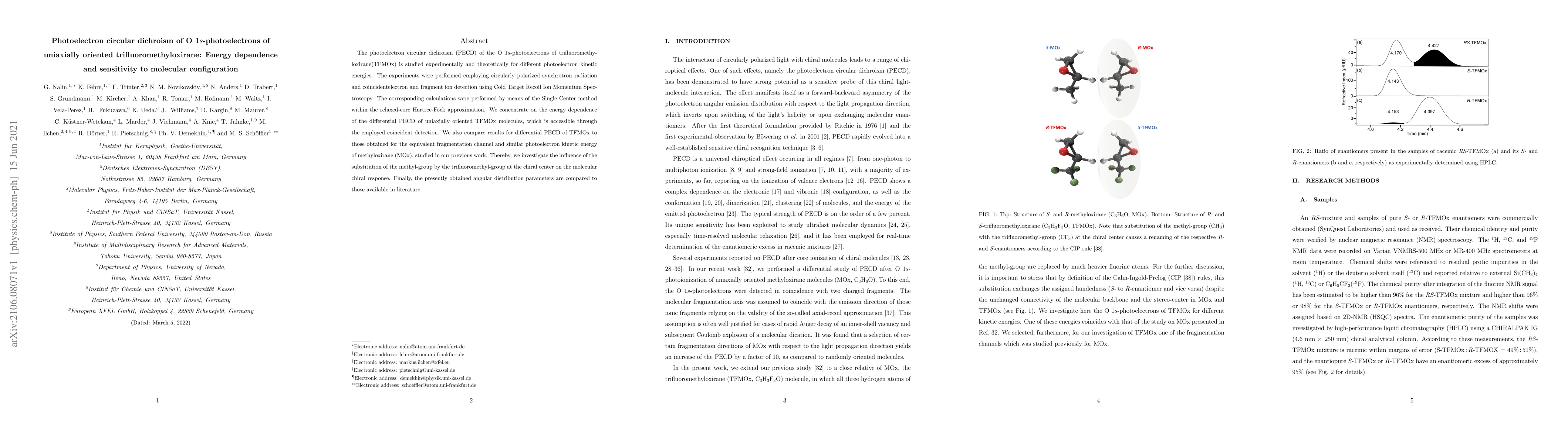 This study investigates the photoelectron circular dichroism (PECD) of O 1s-photoelectrons in trifluoromethyloxirane (TFMOx) using synchrotron radiation and theoretical calculations. The research focuses on the energy dependence of PECD and compares TFMOx's response to methyloxirane (MOx), exploring the impact of trifluoromethyl substitution on molecular chirality.