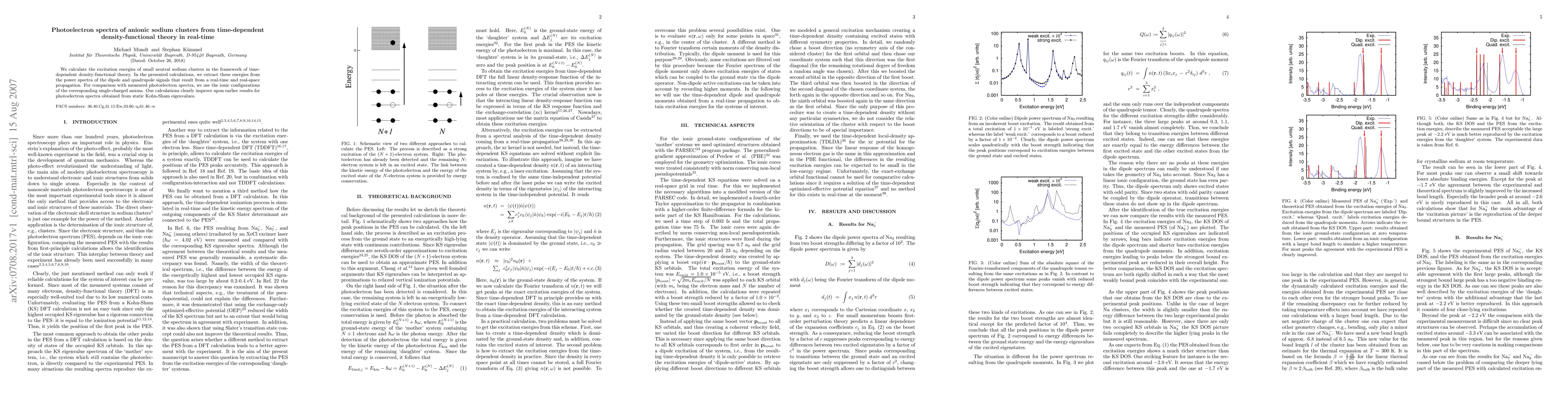 This paper uses time-dependent density-functional theory to calculate excitation energies of neutral sodium clusters, extracting these energies from dipole and quadrupole signals in real-time. The results are compared with photoelectron spectra of corresponding anionic configurations, showing improved accuracy over previous static methods.