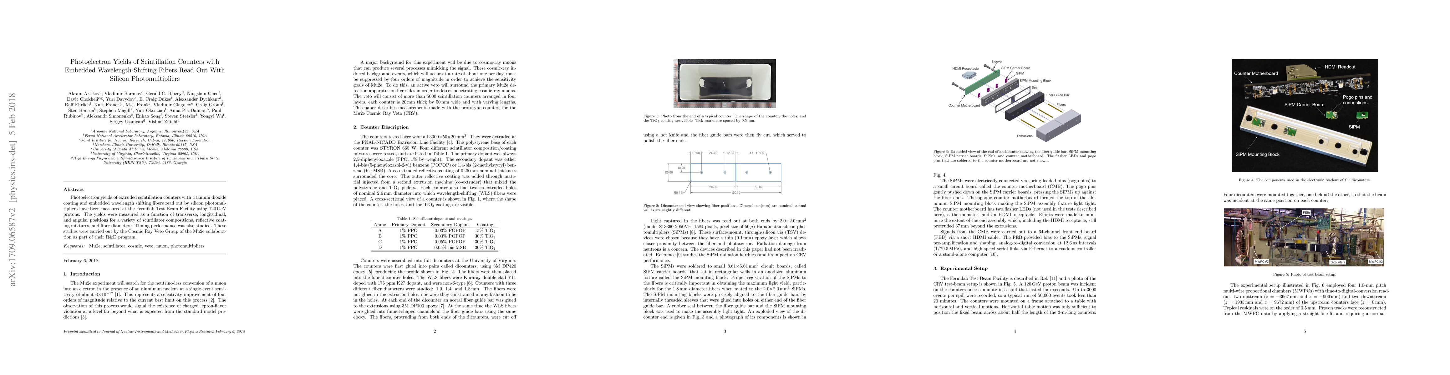 This study measures photoelectron yields from scintillation counters embedded with wavelength-shifting fibers and read out by silicon photomultipliers at Fermilab, assessing performance across various scintillator compositions and configurations. The research also evaluates timing performance as part of the Mu2e collaboration's R&D program.