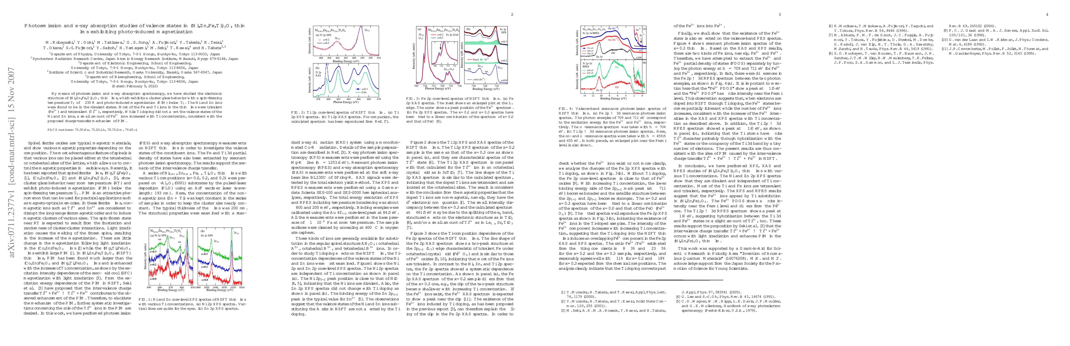 Thin films of (Ni,Zn,Fe,Ti)$_{3}$O$_{4}$ exhibit photo-induced magnetization below a spin-freezing temperature of 230 K, with Ni and Zn ions in divalent states and most Fe and Ti ions in trivalent and tetravalent states, respectively.