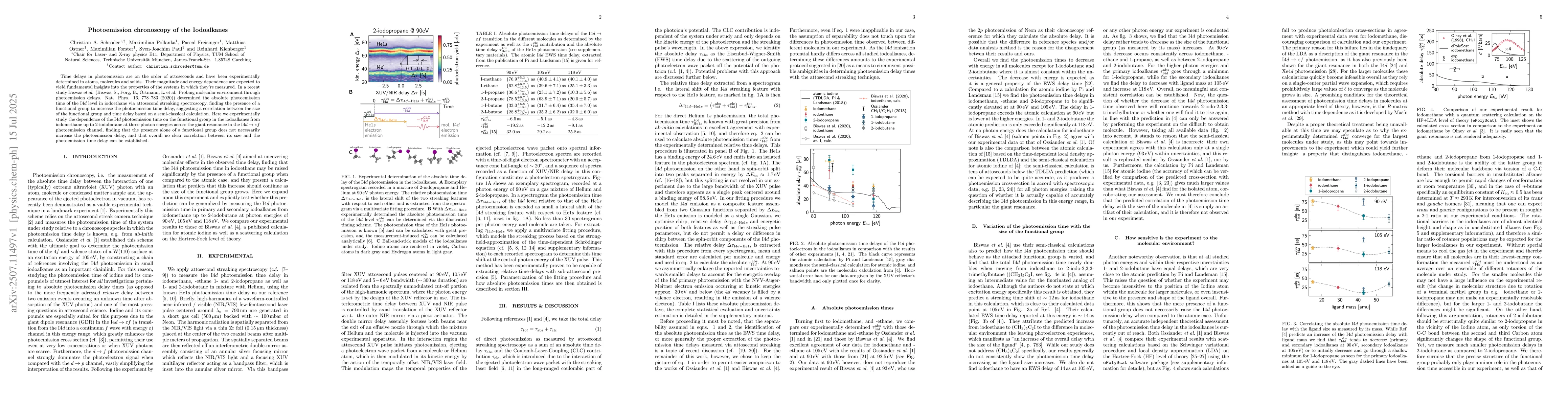 Time delays in photoemission are on the order of attoseconds and have been experimentally determined in atoms, molecules and solids. Their magnitude and energy dependence are expected to yield fundamental insights into the properties of the systems in which they're measured. In a recent study Biswas \textsl{et al.} (Biswas, S., F\"org, B., Ortmann, L. et al. Probing molecular environment through photoemission delays. Nat. Phys. 16, 778-783 (2020)) determined the absolute photoemission time of the I$4d$ level in iodoethane via attosecond streaking spectroscopy, finding the presence of a functional group to increase the photoemission time delay, suggesting a correlation between the size of the functional group and time delay based on a semi-classical calculation. Here we experimentally study the dependence of the I$4d$ photoemission time on the functional group in the iodoalkanes from iodomethane up to 2-iodobutane at three photon energies across the giant resonance in the I$4d\to\varepsilon f$ photoemission channel, finding that the presence alone of a functional group does not necessarily increase the photoemission delay, and that overall no clear correlation between its size and the photoemission time delay can be established.