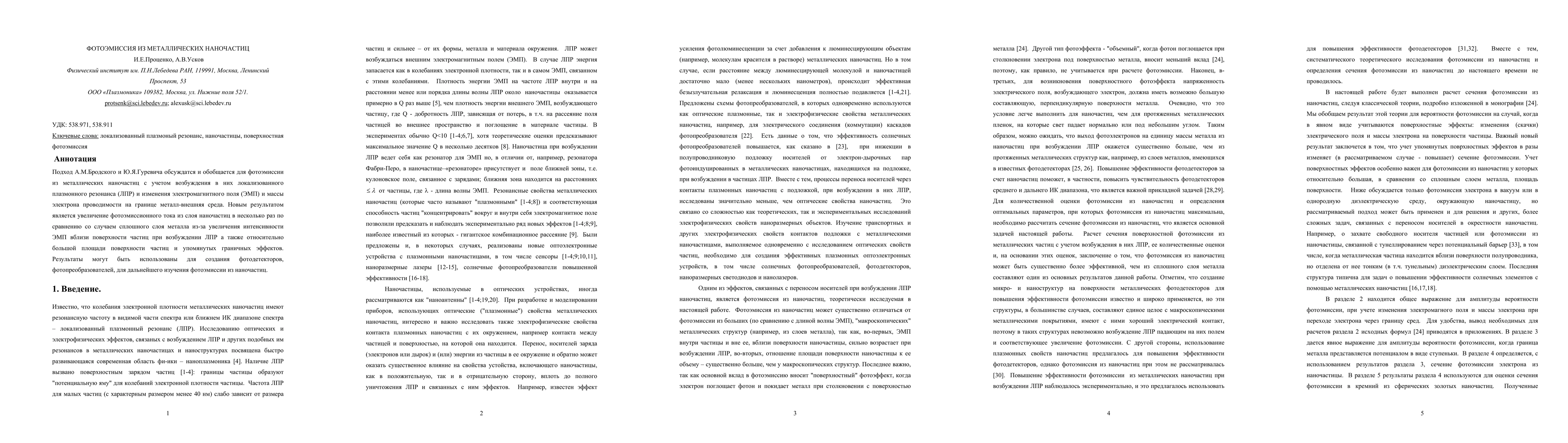 This paper generalizes the approach by A.Brodsky and Yu.Gurevitch for photoemission from metal nanoparticles, highlighting the role of localized plasmon resonance and changes in the electromagnetic field and electron mass at the metal-environment interface. The study finds that photoemission current increases significantly compared to bulk metal due to enhanced electromagnetic field intensity near nanoparticle surfaces, with potential applications in photodetectors and solar cells.