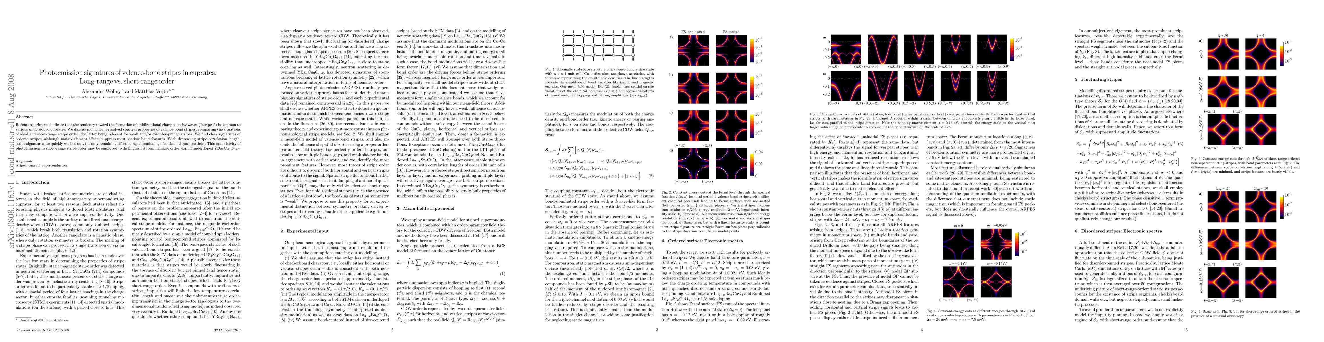 This paper investigates the photoemission signatures of valence-bond stripes in underdoped cuprates, finding clear evidence of ordered stripes despite suppression of shadow band features. Short-range stripe order, however, leads to broadening of antinodal quasiparticles, which may help distinguish it from nematic order.