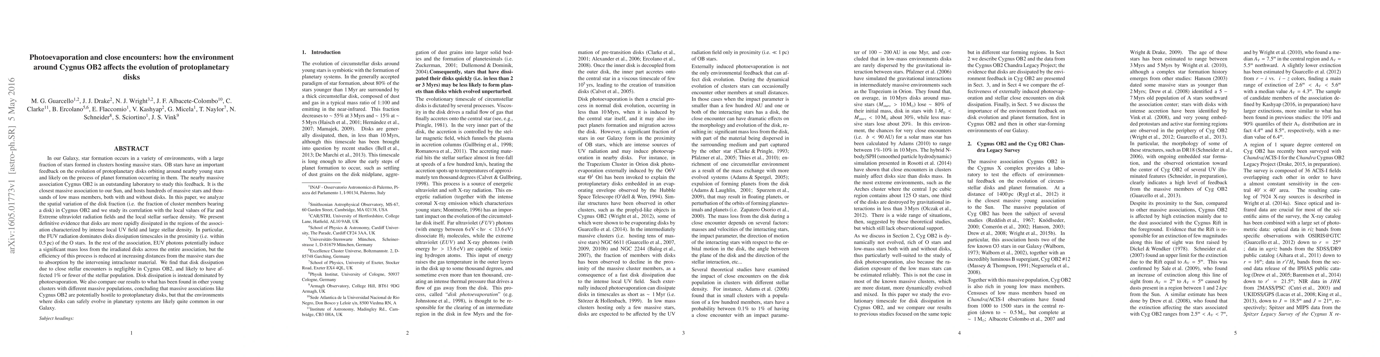 This paper investigates how the environment around Cygnus OB2, a nearby massive star cluster, influences the evolution of protoplanetary disks. It finds that intense local UV radiation, especially FUV, rapidly dissipates disks near O stars, while EUV radiation contributes to disk mass loss across the cluster but is less effective at greater distances due to absorption. Close stellar encounters play a minor role in disk dissipation.