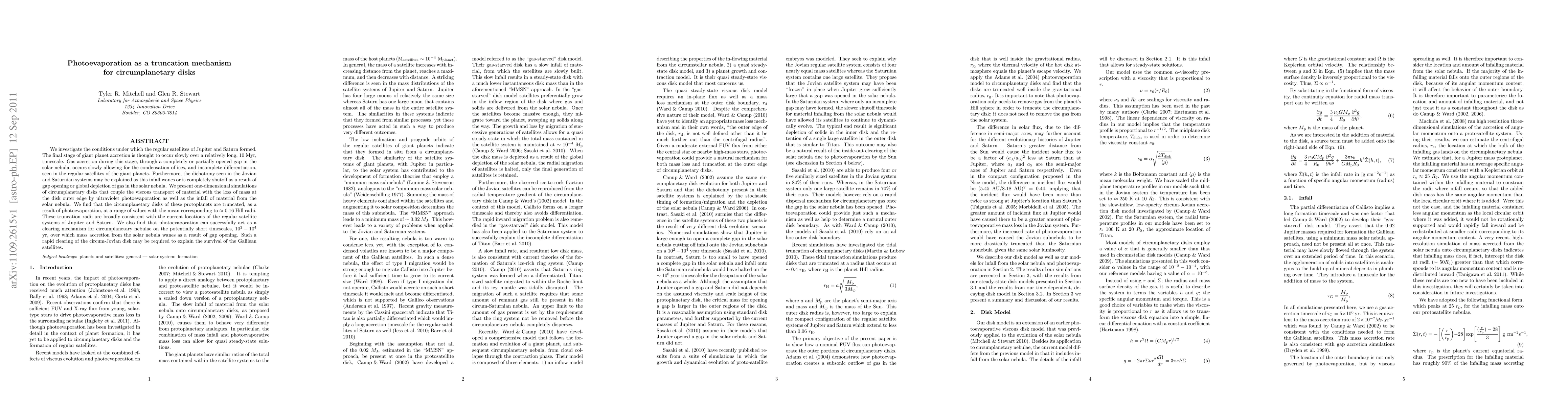 This paper explores the role of ultraviolet photoevaporation in truncating circumplanetary disks around Jupiter and Saturn, finding that it occurs at approximately 0.16 Hill radii, consistent with the current locations of their regular satellite systems. The study suggests that photoevaporation can rapidly clear these disks, potentially explaining the survival of the Galilean satellites as gas accretion wanes.