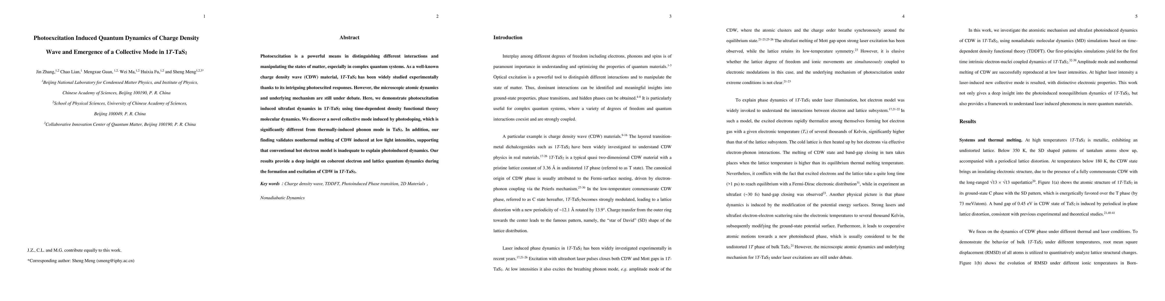 This paper investigates the ultrafast quantum dynamics in 1T-TaS$_2$ following photoexcitation, revealing a novel collective mode distinct from thermally-induced phonons. The study supports nonthermal melting of the charge density wave, challenging the conventional hot electron model.
