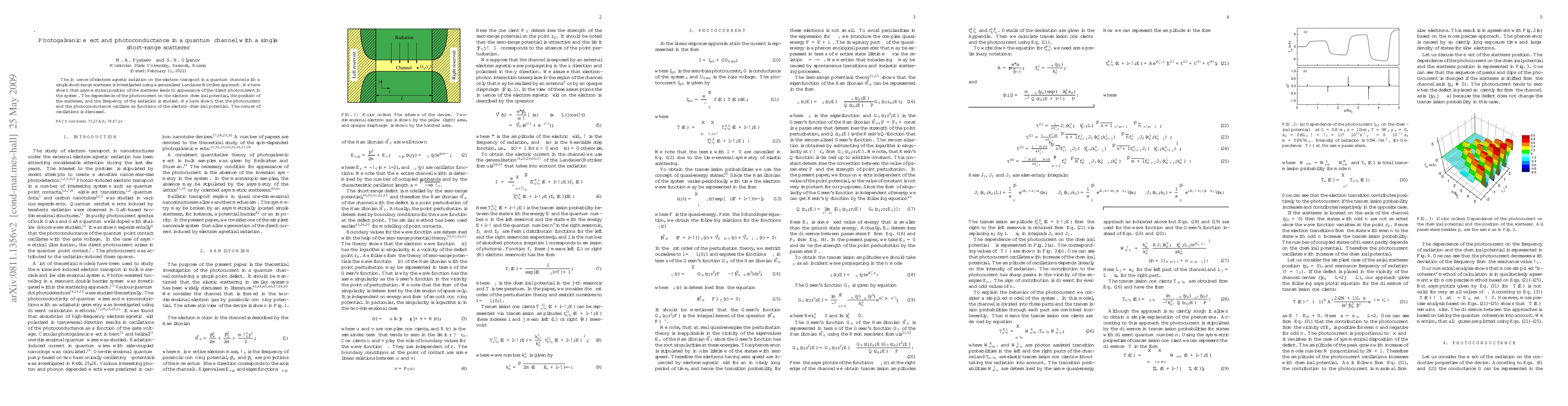 This paper investigates the photogalvanic effect and photoconductance in a quantum channel with a single short-range scatterer, revealing that asymmetric scatterer positioning induces a direct photocurrent. The study finds that the photocurrent and photoconductance oscillate with the electron chemical potential, with the nature of these oscillations analyzed.
