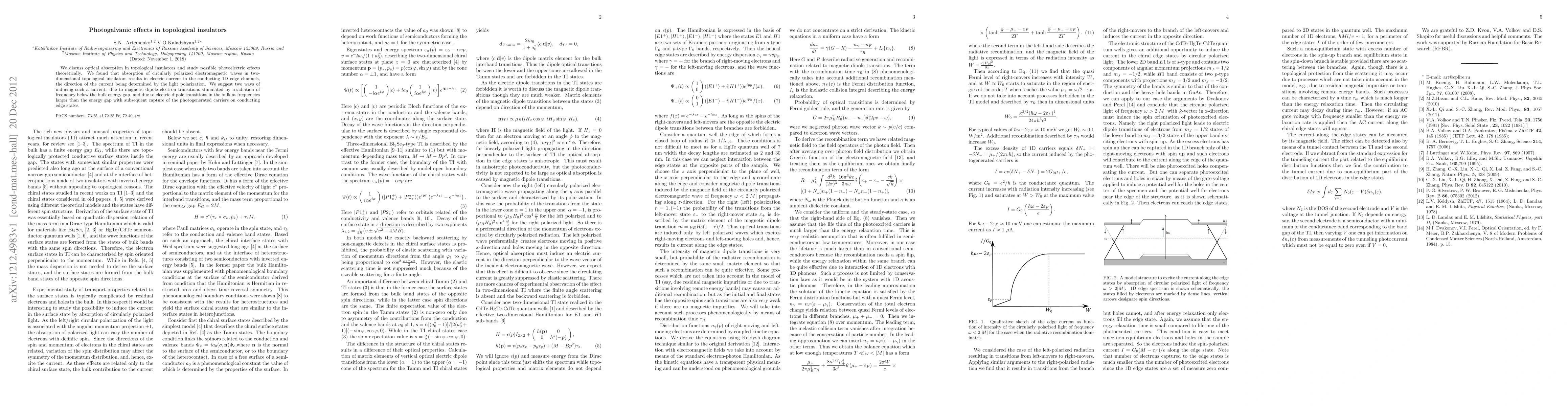 Researchers discovered that certain topological insulators can generate electric current when exposed to circularly polarized light, depending on the light's polarization direction. This phenomenon, known as photogalvanic effect, occurs through two possible mechanisms: magnetic dipole transitions and electric dipole transitions.