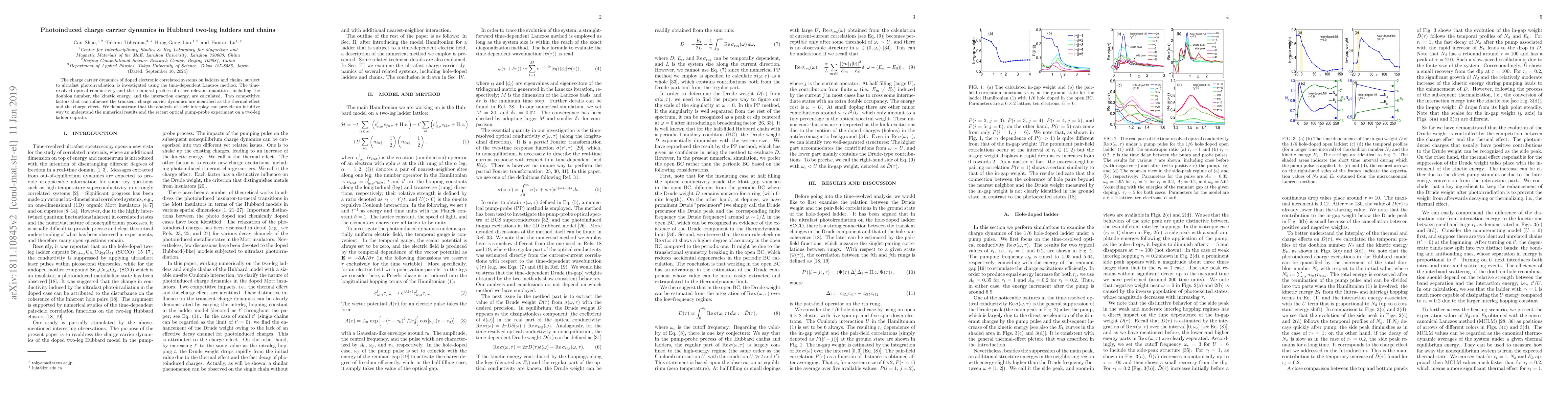 This paper investigates ultrafast photoinduced charge carrier dynamics in doped Hubbard models on two-leg ladders and chains using the time-dependent Lanczos method. The study identifies thermal and charge effects as key factors influencing transient dynamics, providing insights into recent optical pump-probe experiments on cuprate ladders.