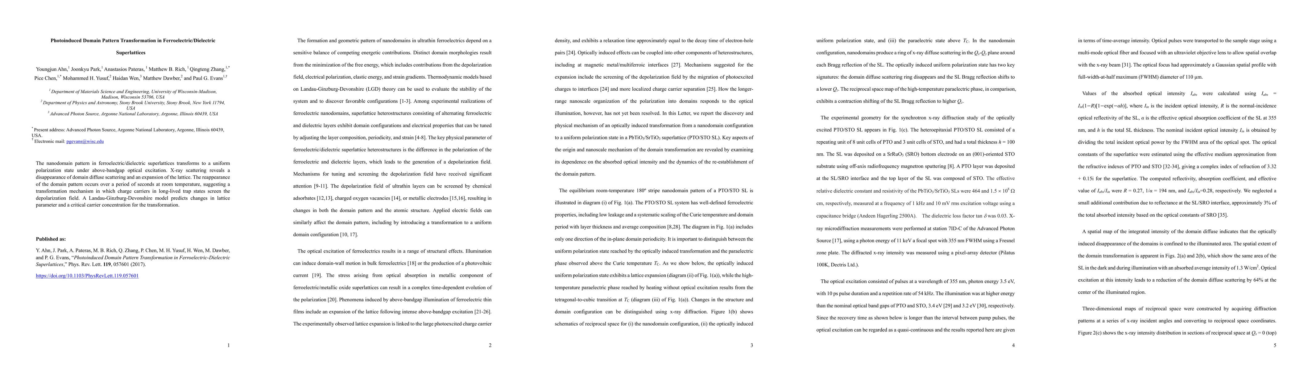 Ferroelectric/dielectric superlattices transform to a uniform polarization state under above-bandgap optical excitation, revealing a transformation mechanism involving charge carriers in trap states.