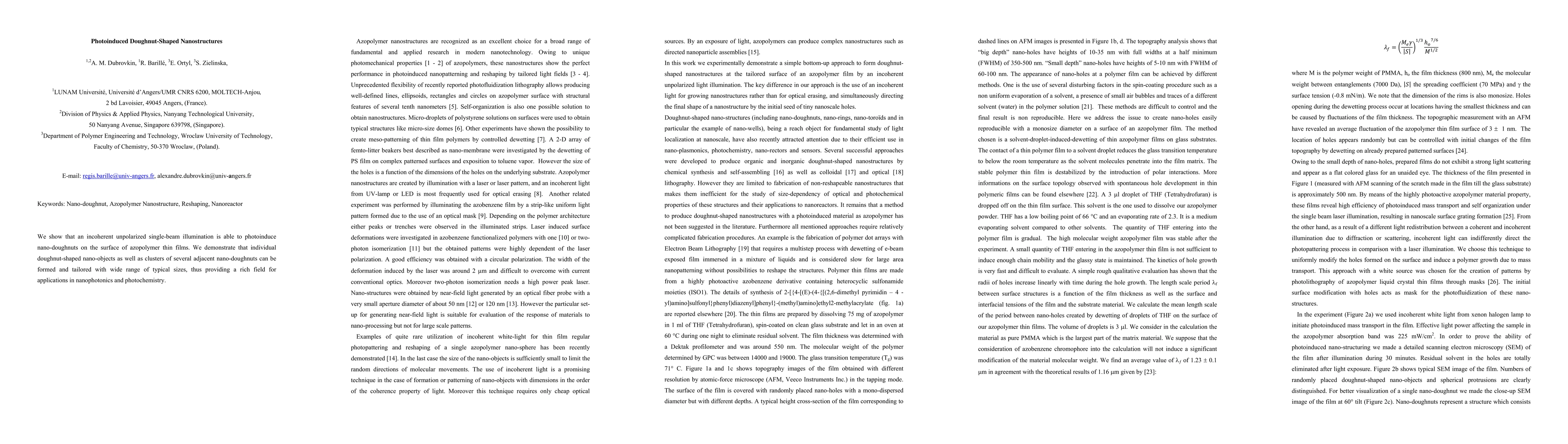 This research demonstrates the formation of doughnut-shaped nanostructures on azopolymer thin films using incoherent unpolarized single-beam illumination, showcasing the ability to tailor both individual and clustered nano-doughnuts for applications in nanophotonics and photochemistry.