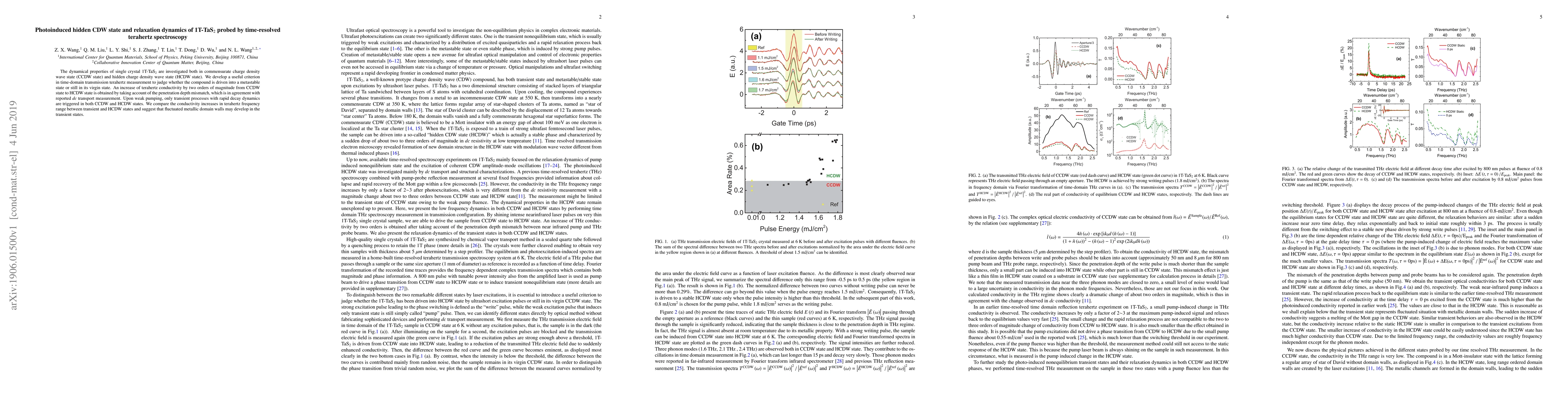 This research investigates the dynamical properties of 1T-TaS$_2$ in its CCDW and HCDW states using time-resolved terahertz spectroscopy, revealing a two-order-of-magnitude increase in terahertz conductivity from CCDW to HCDW state. The study suggests transient metallic domain walls may form in transient states following weak pumping.
