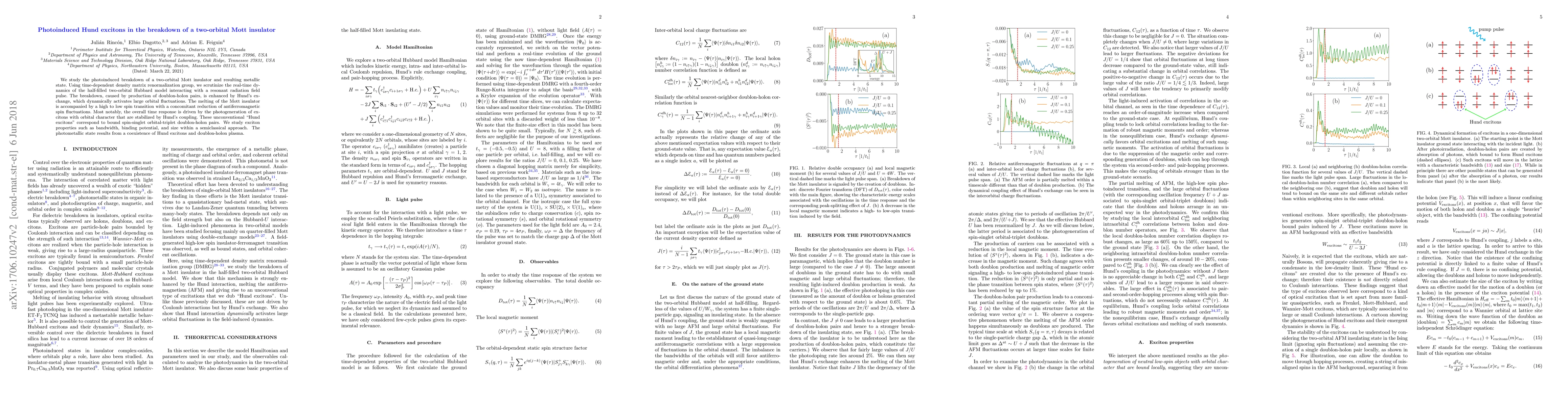 This paper investigates the photoinduced breakdown of a two-orbital Mott insulator, revealing the emergence of metallic states via resonant radiation. The study highlights the formation of unconventional "Hund excitons" driven by Hund's exchange, which stabilizes bound spin-singlet orbital-triplet doublon-holon pairs, leading to a photometallic state.
