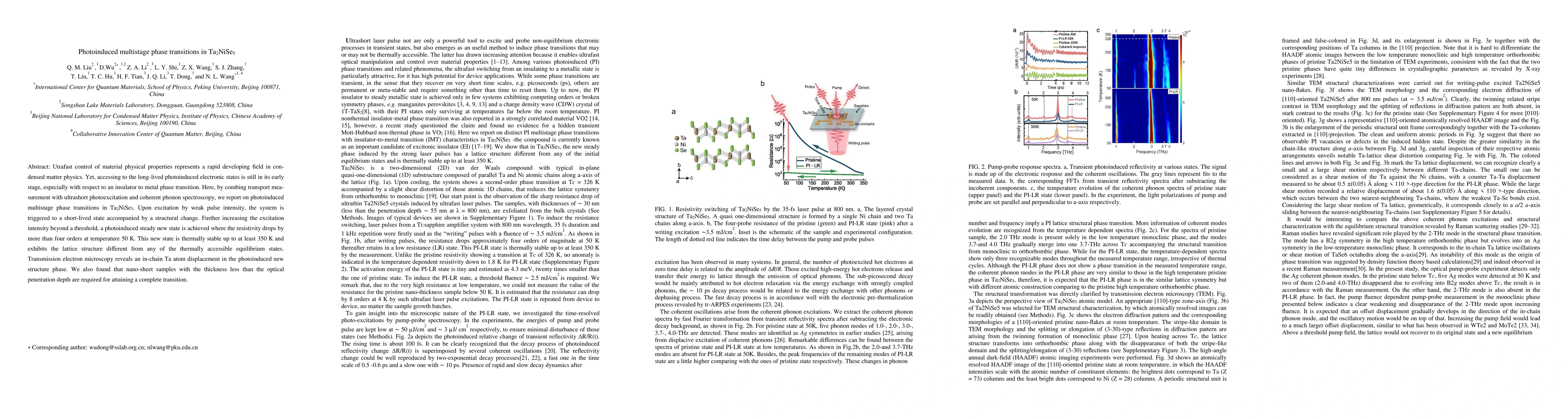 The paper presents a comprehensive study combining ultrafast photoexcitation, coherent phonon spectroscopy, and transport measurements to reveal photoinduced multistage phase transitions in Ta2NiSe5, including a stable high-conductivity phase with a distinct crystal structure.