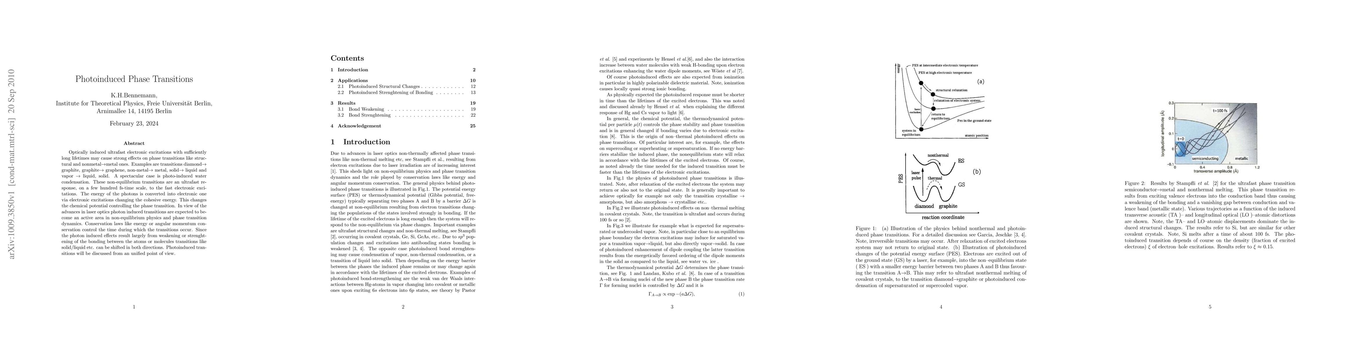 This paper explores how ultrafast optical excitations can induce phase transitions, such as diamond to graphite or non-metal to metal, by altering the cohesive energy and chemical potential through photon-induced electronic excitations. Advances in laser technology are expected to make photon-induced transitions a significant area of non-equilibrium physics research.