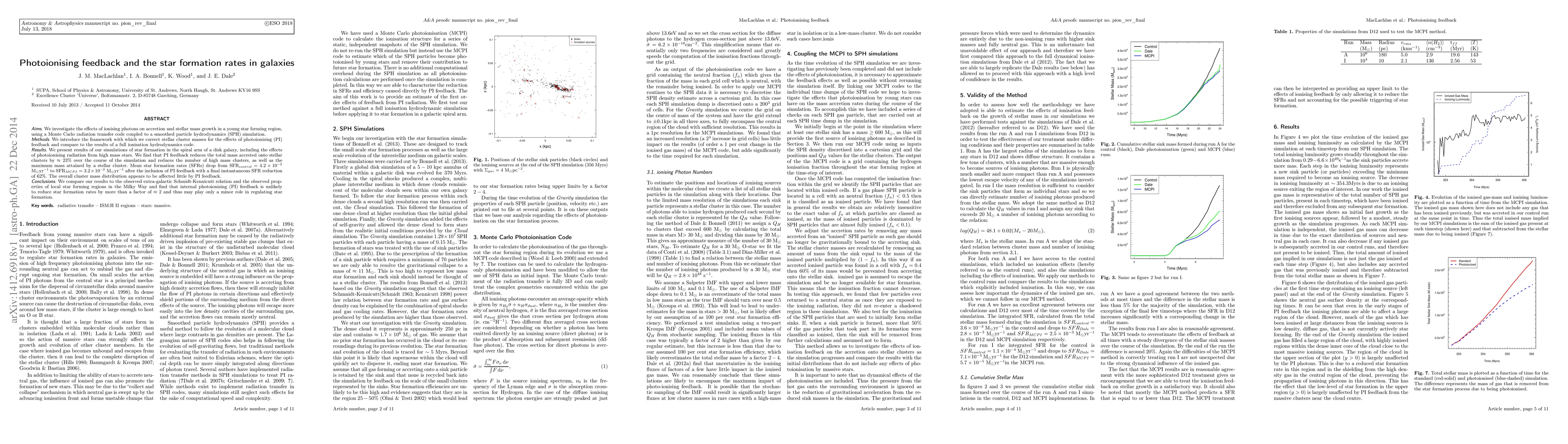 Aims. We investigate the effects of ionising photons on accretion and stellar mass growth in a young star forming region, using a Monte Carlo radiation transfer code coupled to a smoothed particle hydrodynamics (SPH) simulation. Methods. We introduce the framework with which we correct stellar cluster masses for the effects of photoionising (PI) feedback and compare to the results of a full ionisation hydrodynamics code. Results. We present results of our simulations of star formation in the spiral arm of a disk galaxy, including the effects of photoionising radiation from high mass stars. We find that PI feedback reduces the total mass accreted onto stellar clusters by approximately 23 per cent over the course of the simulation and reduces the number of high mass clusters, as well as the maximum mass attained by a stellar cluster. Mean star formation rates (SFRs) drop from 0.042 solar masses per year in our control run to 0.032 solar masses per year after the inclusion of PI feedback with a final instantaneous SFR reduction of 62 per cent. The overall cluster mass distribution appears to be affected little by PI feedback. Conclusions. We compare our results to the observed extra-galactic Schmidt-Kennicutt relation and the observed properties of local star forming regions in the Milky Way and find that internal photoionising (PI) feedback is unlikely to reduce star formation rates by more than a factor of approximately 2 and thus may play only a minor role in regulating star formation.