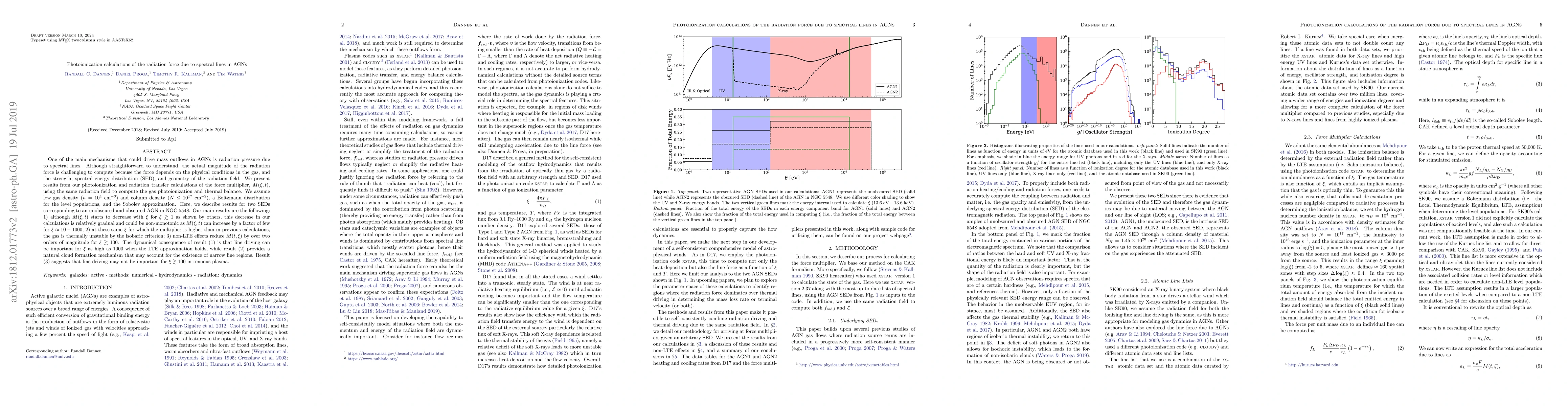 One of the main mechanisms that could drive mass outflows in AGNs is radiation pressure due to spectral lines. Although straightforward to understand, the actual magnitude of the radiation force is challenging to compute because the force depends on the physical conditions in the gas, and the strength, spectral energy distribution (SED), and geometry of the radiation field. We present results from our photoionization and radiation transfer calculations of the force multiplier, $M(\xi,t)$, using the same radiation field to compute the gas photoionization and thermal balance. We assume low gas density ($n = 10^4~\rm{cm^{-3}}$) and column density ($N \leq 10^{17}~\rm{ cm^{-2}}$), a Boltzmann distribution for the level populations, and the Sobolev approximation. Here, we describe results for two SEDs corresponding to an unobscured and obscured AGN in NGC 5548. Our main results are the following: 1) although $M(\xi,t)$ starts to decrease with $\xi$ for $\xi \gtrsim 1$ as shown by others, this decrease in our calculations is relatively gradual and could be non-monotonic as $M(\xi,t)$ can increase by a factor of few for $\xi \approx 10-1000$; 2) at these same $\xi$ for which the multiplier is higher than in previous calculations, the gas is thermally unstable by the isobaric criterion; 3) non-LTE effects reduce $M(t,\xi)$ by over two orders of magnitude for $\xi \gtrsim 100$. The dynamical consequence of result (1) is that line driving can be important for $\xi$ as high as $1000$ when the LTE approximation holds, while result (2) provides a natural cloud formation mechanism that may account for the existence of narrow line regions. Result (3) suggests that line driving may not be important for $\xi\gtrsim100$ in tenuous plasma.