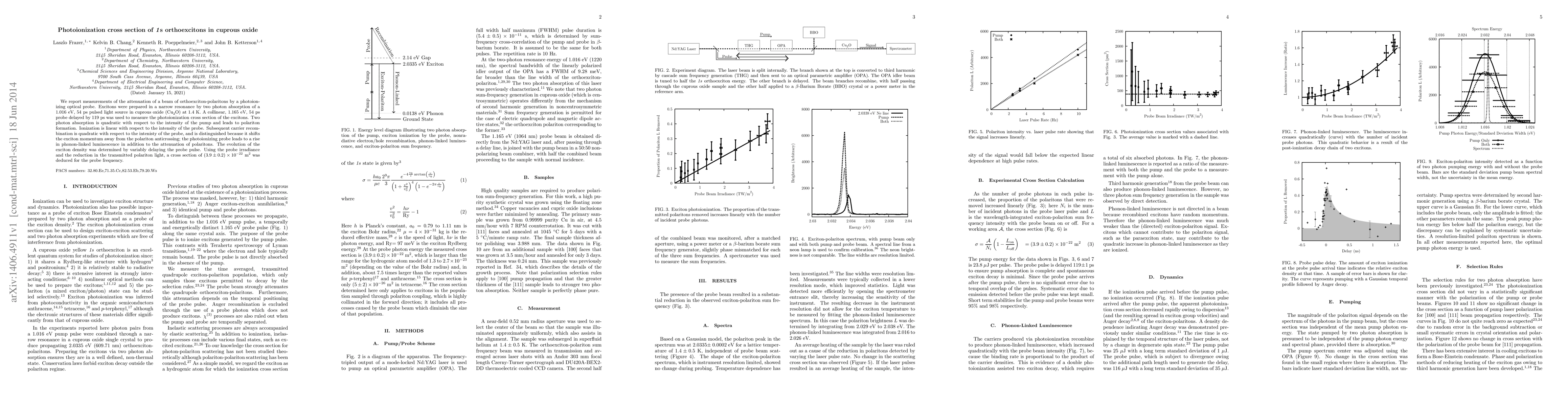 This study measures the photoionization cross section of 1s orthoexcitons in cuprous oxide using a photoionizing optical probe, revealing a cross section of 3.9*10^(-22) m^2, and demonstrates the distinct effects of probe intensity on exciton recombination and phonon-linked luminescence.