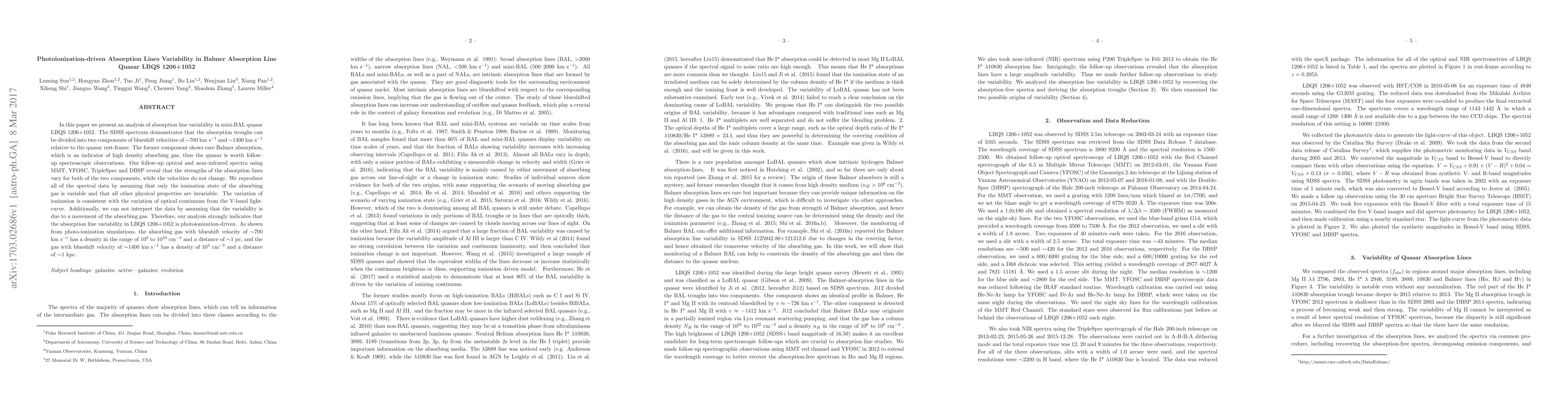 In this paper we present an analysis of absorption line variability in mini-BAL quasar LBQS 1206+1052. The SDSS spectrum demonstrates that the absorption troughs can be divided into two components of blueshift velocities of $\sim$700 km s$^{-1}$ and $\sim$1400 km s$^{-1}$ relative to the quasar rest-frame. The former component shows rare Balmer absorption, which is an indicator of high density absorbing gas, thus the quasar is worth follow-up spectroscopic observations. Our follow-up optical and near-infrared spectra using MMT, YFOSC, TripleSpec and DBSP reveal that the strengths of the absorption lines vary for both of the two components, while the velocities do not change. We reproduce all of the spectral data by assuming that only the ionization state of the absorbing gas is variable and that all other physical properties are invariable. The variation of ionization is consistent with the variation of optical continuum from the V-band light-curve. Additionally, we can not interpret the data by assuming that the variability is due to a movement of the absorbing gas. Therefore, our analysis strongly indicates that the absorption line variability in LBQS 1206+1052 is photoionization-driven. As shown from photo-ionization simulations, the absorbing gas with blueshift velocity of $\sim$700 km s$^{-1}$ has a density in the range of $10^9$ to $10^{10}$ cm$^{-3}$ and a distance of $\sim$1 pc, and the gas with blueshift velocity of $\sim$1400 km s$^{-1}$ has a density of $10^3$ cm$^{-3}$ and a distance of $\sim$1 kpc.