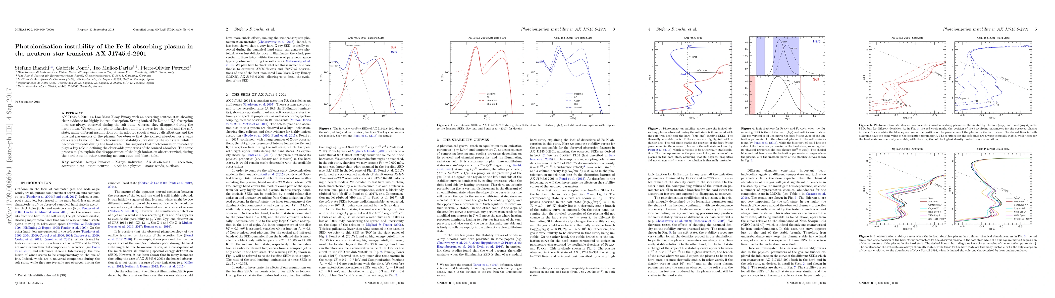 The Fe K absorbing plasma in neutron star AX J1745.6-2901 shows photoionization instability during hard states, causing the absorber to disappear, whereas it remains stable during soft states.
