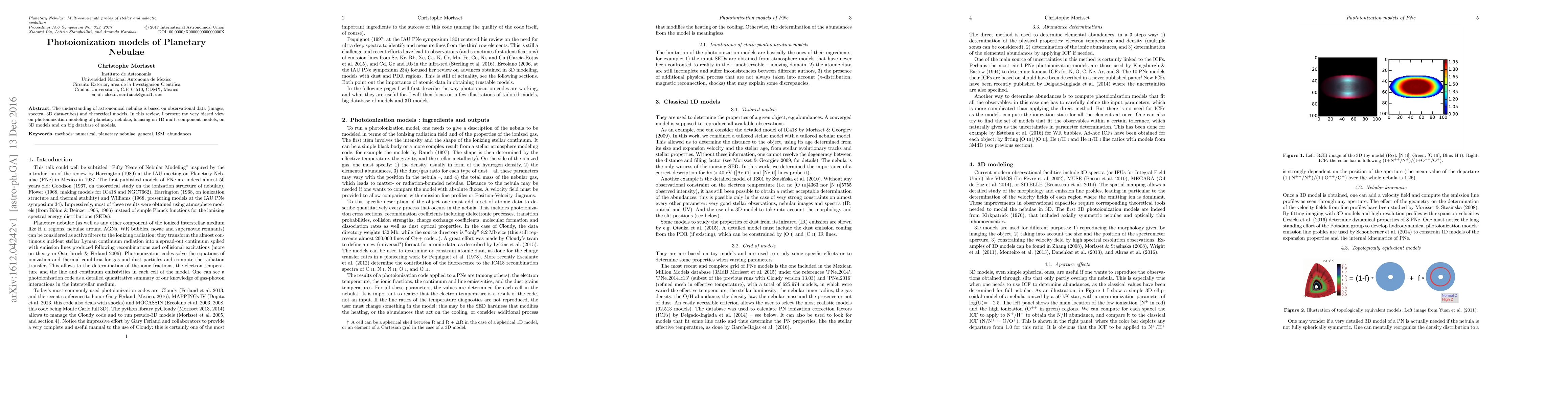 The paper reviews photoionization models of planetary nebulae (PNe), focusing on 1D multi-component models, 3D models, and a large database of models. It discusses the limitations of static photoionization models, including input SEDs, incomplete atomic data, and neglected physical processes.