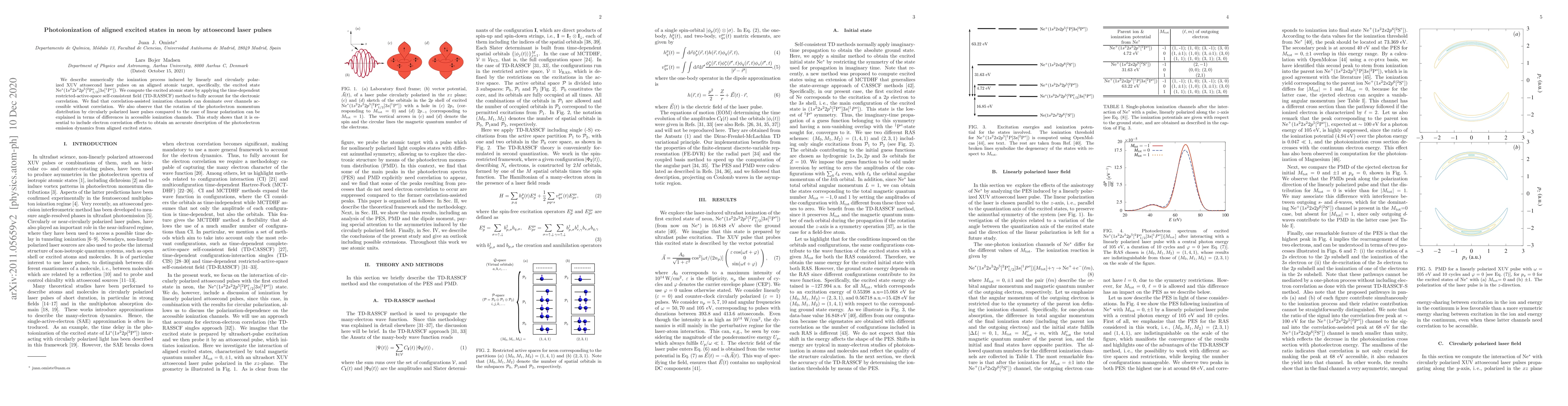 We describe numerically the ionization process induced by linearly and circularly polarized XUV attosecond laser pulses on an aligned atomic target, specifically, the excited state Ne$^*(1s^22s^22p^5[{}^2\text{P}^\text{o}_{1/2}]3s[^1\text{P}^o])$. We compute the excited atomic state by applying the time-dependent restricted-active-space self-consistent field (TD-RASSCF) method to fully account for the electronic correlation. We find that correlation-assisted ionization channels can dominate over channels accessible without correlation. We also observe that the rotation of the photoelectron momentum distribution by circularly polarized laser pulses compared to the case of linear polarization can be explained in terms of differences in accessible ionization channels. This study shows that it is essential to include electron correlation effects to obtain an accurate description of the photoelectron emission dynamics from aligned excited states.