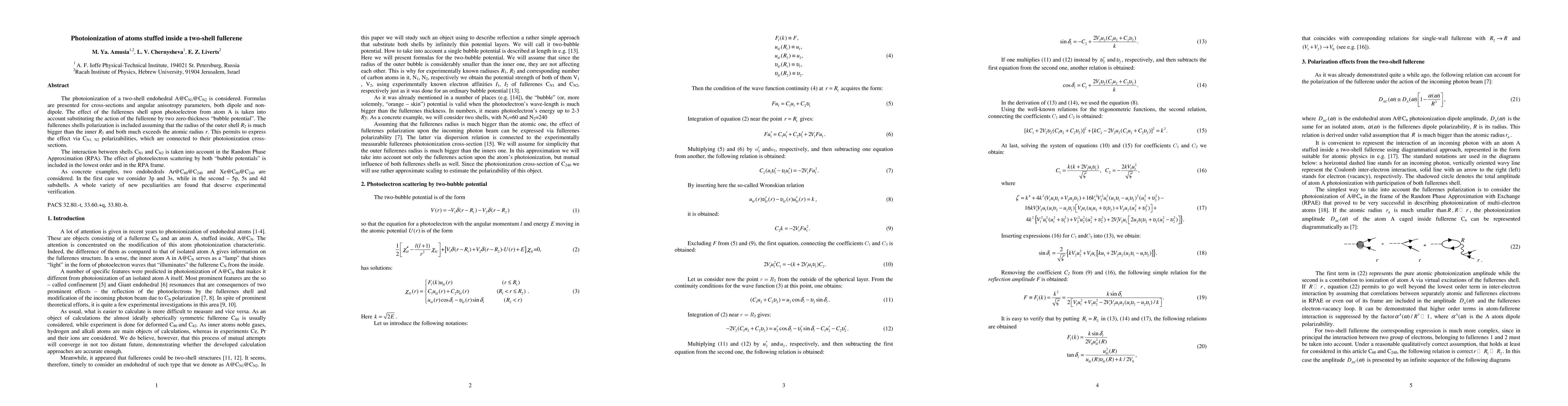 This paper investigates the photoionization of atoms encapsulated within a two-shell fullerene, modeling the effect of the fullerene shells using "bubble potentials" and considering their polarization and interaction via the Random Phase Approximation. It presents cross-section formulas and angular anisotropy parameters, highlighting new phenomena in endohedrals like Ar@C60@C240 and Xe@C60@C240 that warrant experimental validation.