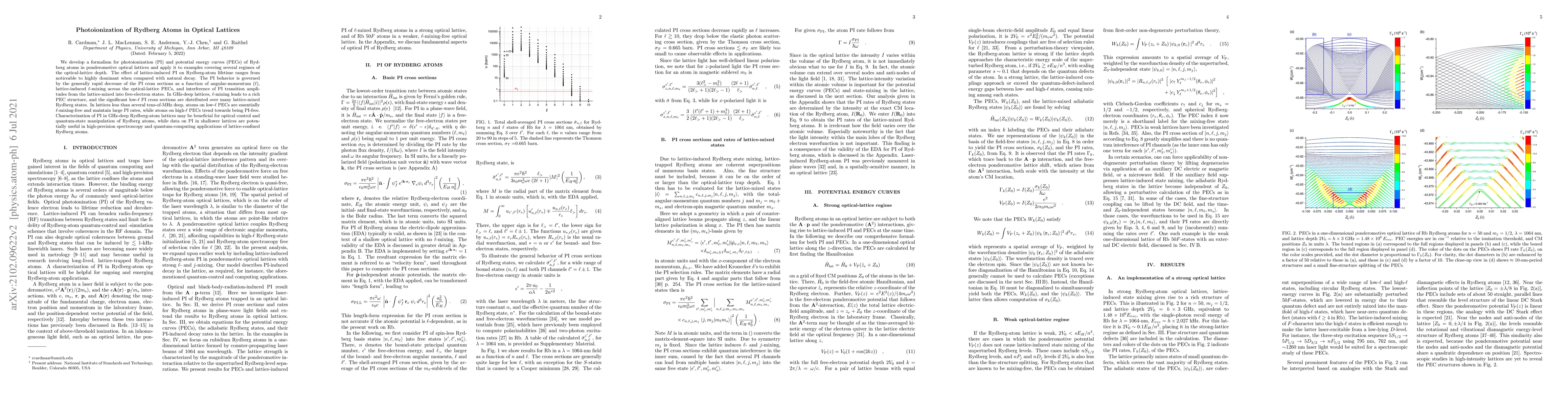 We develop a formalism for photoionization (PI) and potential energy curves (PECs) of Rydberg atoms in ponderomotive optical lattices and apply it to examples covering several regimes of the optical-lattice depth. The effect of lattice-induced PI on Rydberg-atom lifetime ranges from noticeable to highly dominant when compared with natural decay. The PI behavior is governed by the generally rapid decrease of the PI cross sections as a function of angular-momentum ($\ell$), and by lattice-induced $\ell$-mixing across the optical-lattice PECs. In GHz-deep lattices, $\ell$-mixing leads to a rich PEC structure, and the significant low-$\ell$ PI cross sections are distributed over many lattice-mixed Rydberg states. In lattices less than several tens-of-MHz deep, atoms on low-$\ell$ PECs are essentially $\ell$-mixing-free and maintain large PI cross sections, while atoms on high-$\ell$ PECs trend towards being PI-free. Characterization of PI in GHz-deep Rydberg-atom lattices may be beneficial for optical control and quantum-state manipulation of Rydberg atoms, while data on PI in shallower lattices are potentially useful in high-precision spectroscopy and quantum-computing applications of lattice-confined Rydberg atoms.