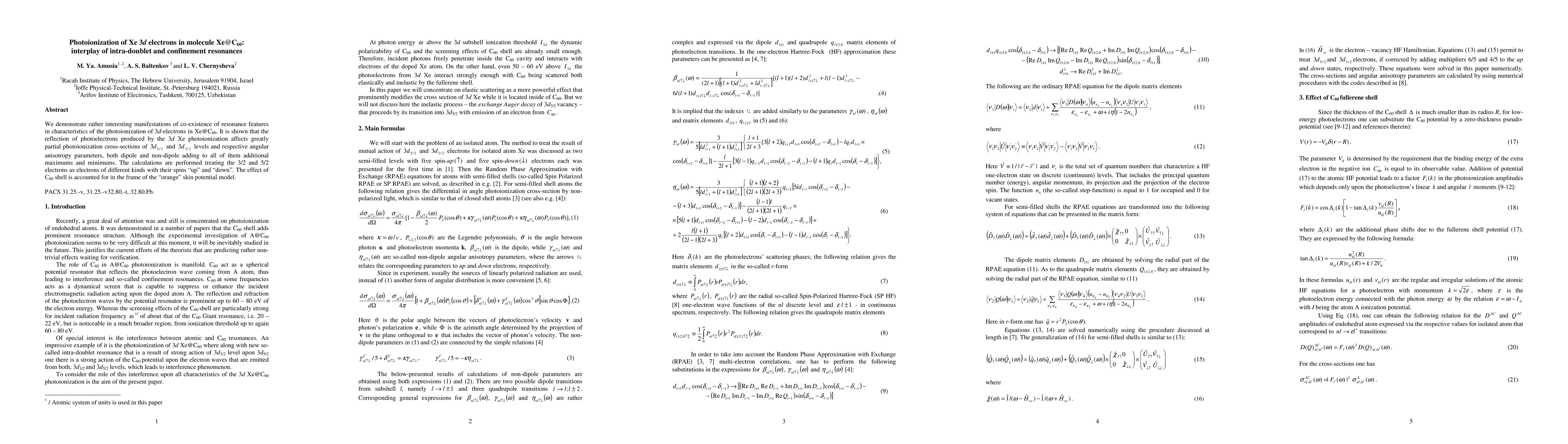 Research demonstrates the co-existence of resonance features in photoionization of Xe 3d electrons in molecule Xe@C60, affecting cross-sections and angular anisotropy parameters with additional maxima and minima.