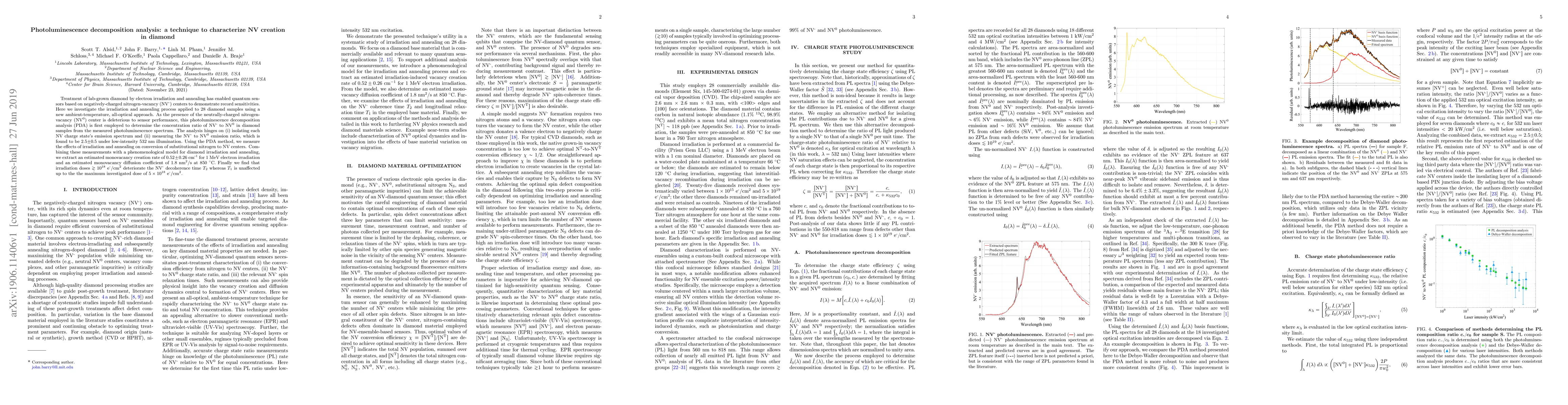 Treatment of lab-grown diamond by electron irradiation and annealing has enabled quantum sensors based on negatively-charged nitrogen-vacancy (NV$^\text{-}$) centers to demonstrate record sensitivities. \cite{Clevenson2015,Wolf2015,Barry2016,Chatzidrosos2017}. Here we investigate the irradiation and annealing process applied to 28 diamond samples using a new ambient-temperature, all-optical approach. As the presence of the neutrally-charged nitrogen-vacancy (NV$^\text{0}$) center is deleterious to sensor performance, this photoluminescence decomposition analysis (PDA) is first employed to determine the concentration ratio of NV$^\text{-}$ to NV$^0$ in diamond samples from the measured photoluminescence spectrum. The analysis hinges on (i) isolating each NV charge state's emission spectrum and (ii) measuring the NV$^\text{-}$ to NV$^0$ emission ratio, which is found to be 2.5$\pm$0.5 under low-intensity 532 nm illumination. Using the PDA method, we measure the effects of irradiation and annealing on conversion of substitutional nitrogen to NV centers. Combining these measurements with a phenomenological model for diamond irradiation and annealing, we extract an estimated monovacancy creation rate of $0.52\pm 0.26$ cm$^{\text{-1}}$ for 1 MeV electron irradiation and an estimated monovacancy diffusion coefficient of 1.8 nm$^2$/s at 850~$^\circ$C. Finally we find that irradiation doses $\gtrsim 10^{18}$ e$^\text{-}$/cm$^2$ deteriorate the NV$^\text{-}$ decoherence time $T_2$ whereas $T_1$ is unaffected up to the the maximum investigated dose of $5\times 10^{18}$ e$^\text{-}$/cm$^2$.