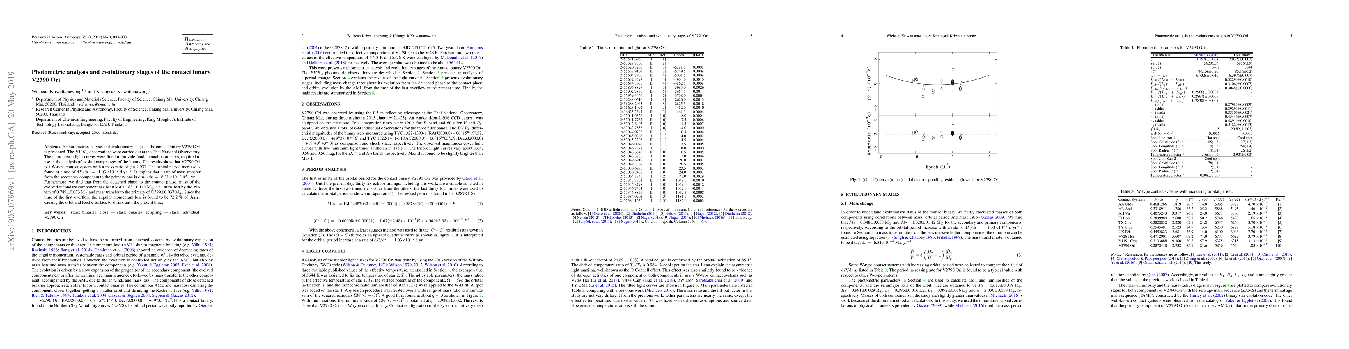 The study of V2790 Ori, a contact binary, reveals a significant mass transfer between components over time, leading to a 72% loss of angular momentum and a shrinking orbit.