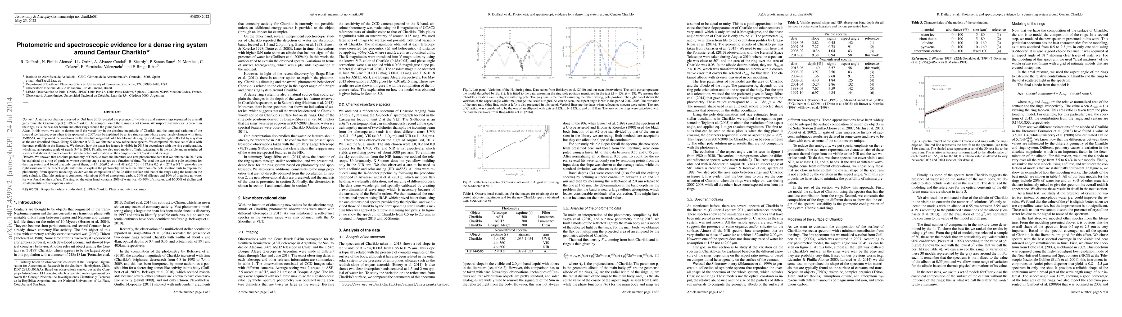 A study found evidence for a dense ring system around Centaur Chariklo, with water ice in 20% of the rings and different surface compositions on Chariklo itself.