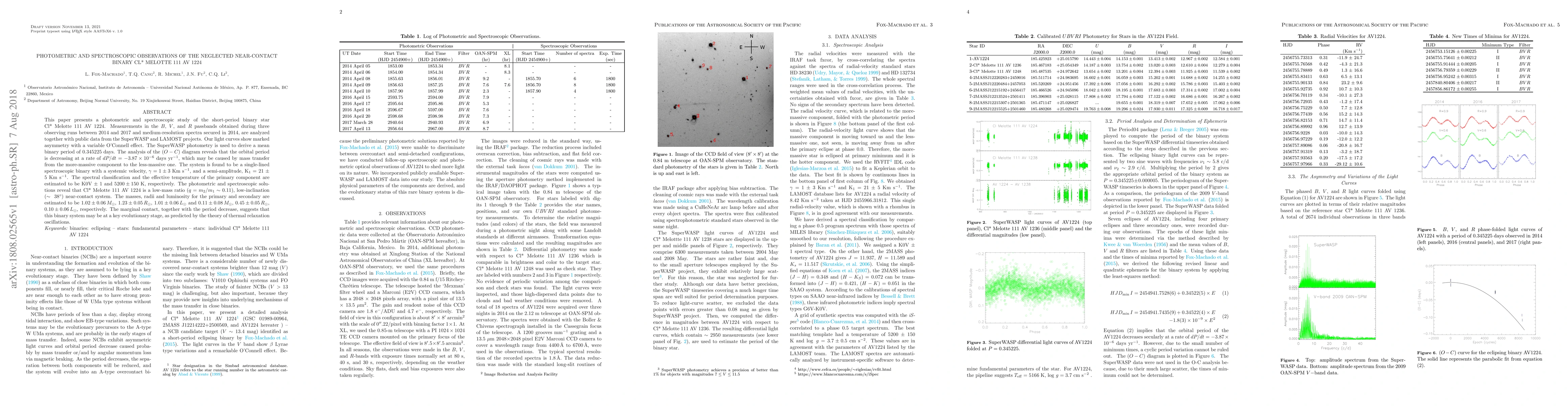 This study analyzes photometric and spectroscopic data of the near-contact binary Cl* Melotte 111 AV 1224, revealing a decreasing orbital period and suggesting mass transfer. The system is a low-mass ratio, low-inclination near-contact binary with evolving characteristics indicative of thermal relaxation oscillations.