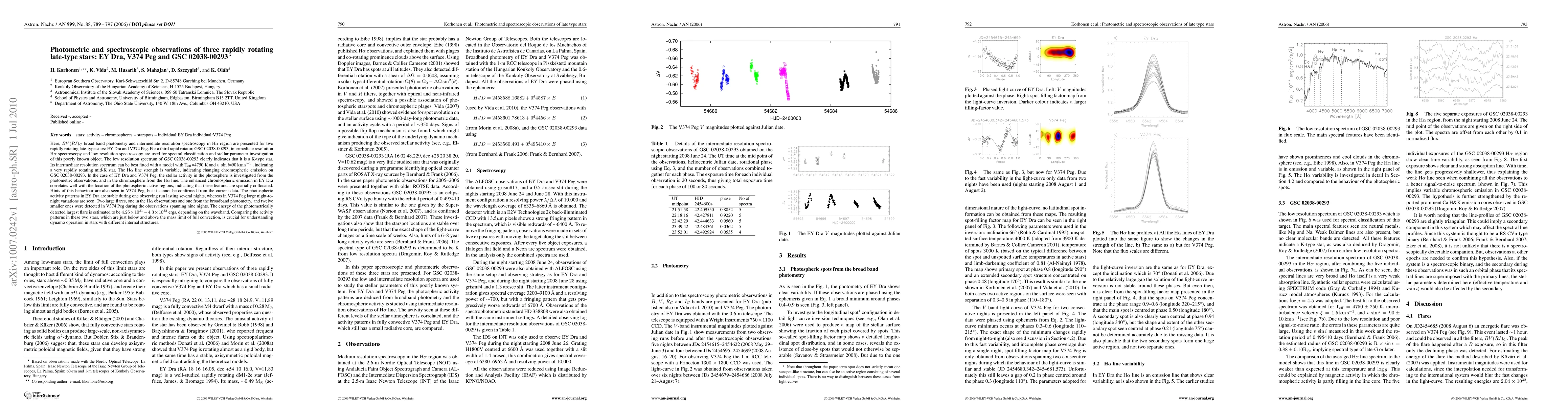 This paper presents photometric and spectroscopic observations of three rapidly rotating late-type stars, focusing on EY Dra, V374 Peg, and GSC 02038-00293. The study reveals variable chromospheric activity and flares in V374 Peg, while the chromospheric emission in EY Dra correlates with photospheric active regions.