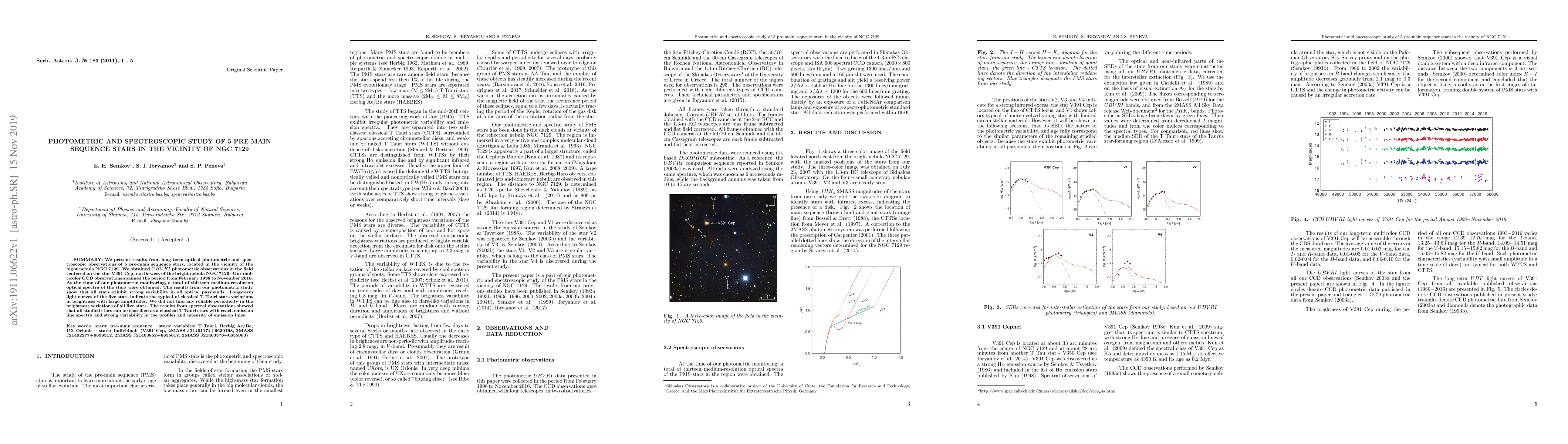 This study presents long-term optical photometric and spectroscopic observations of five pre-main sequence stars near NGC 7129, revealing strong variability typical of classical T Tauri stars with no detectable periodicity and rich emission line spectra.