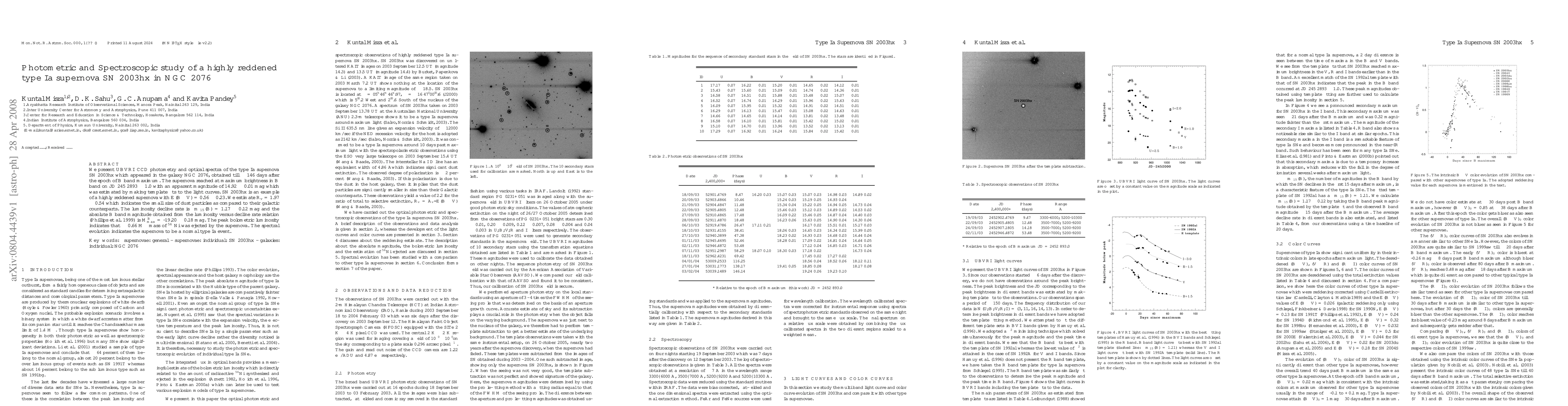 This study presents photometric and spectroscopic data for a highly reddened type Ia supernova SN 2003hx, which was observed in galaxy NGC 2076 until 146 days after its maximum brightness, providing insights into the supernova's properties and behavior.