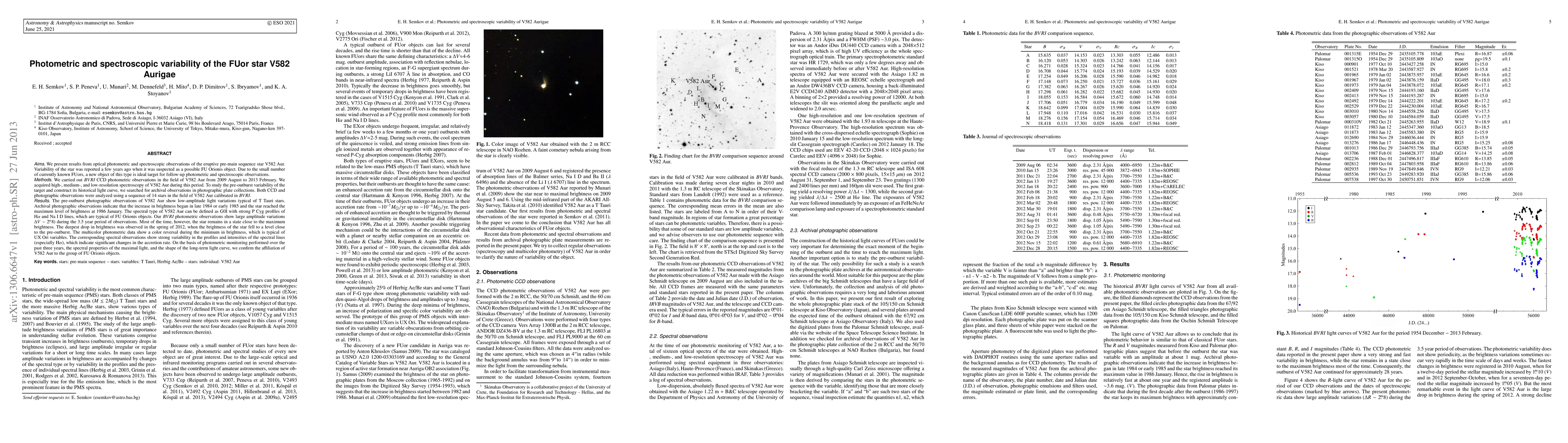 This study investigates the photometric and spectroscopic variability of the FU Orionis star V582 Aurigae, revealing large amplitude variations and significant spectral line changes, confirming its classification as a FU Orionis object. The star exhibited a deep brightness drop in 2012, returning to pre-outburst levels.