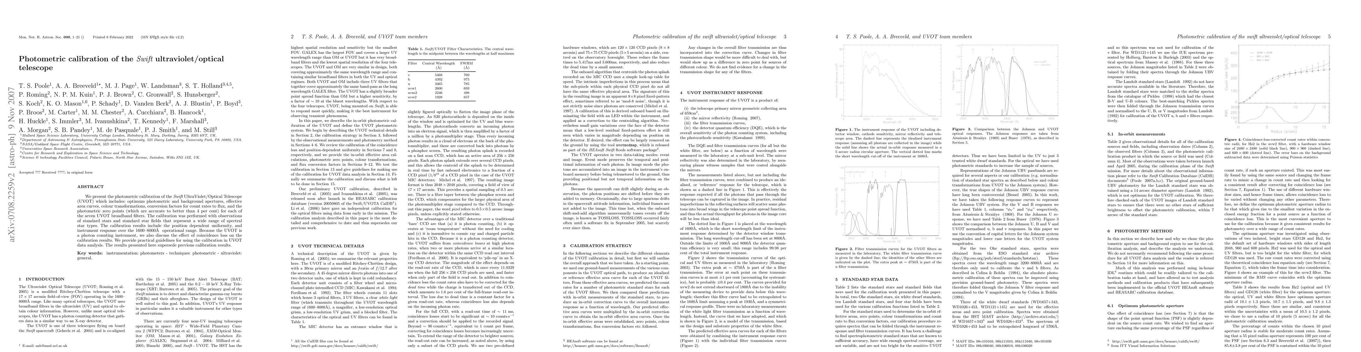 We present the photometric calibration of the Swift UltraViolet/Optical Telescope (UVOT) which includes: optimum photometric and background apertures, effective area curves, colour transformations, conversion factors for count rates to flux, and the photometric zero points (which are accurate to better than 4 per cent) for each of the seven UVOT broadband filters. The calibration was performed with observations of standard stars and standard star fields that represent a wide range of spectral star types. The calibration results include the position dependent uniformity, and instrument response over the 1600-8000A operational range. Because the UVOT is a photon counting instrument, we also discuss the effect of coincidence loss on the calibration results. We provide practical guidelines for using the calibration in UVOT data analysis. The results presented here supersede previous calibration results.