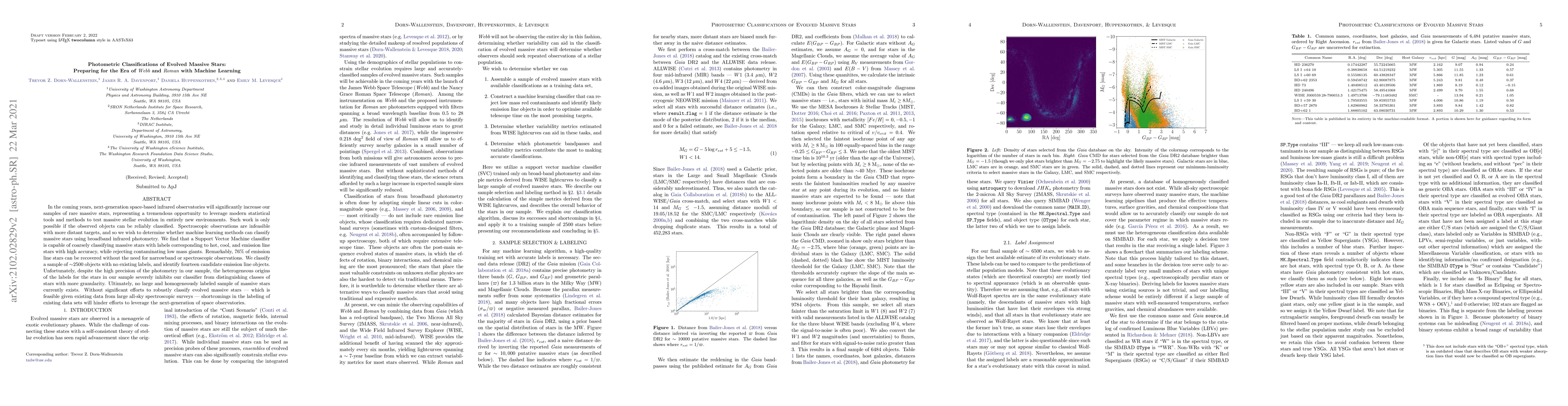 This paper uses machine learning to classify evolved massive stars using broadband infrared photometry, finding that a Support Vector Machine can accurately categorize stars into hot, cool, and emission line types. Despite high precision, the lack of a large, homogeneously labeled sample limits the classifier's granularity, emphasizing the need for robust classification efforts to fully utilize future space observatories.
