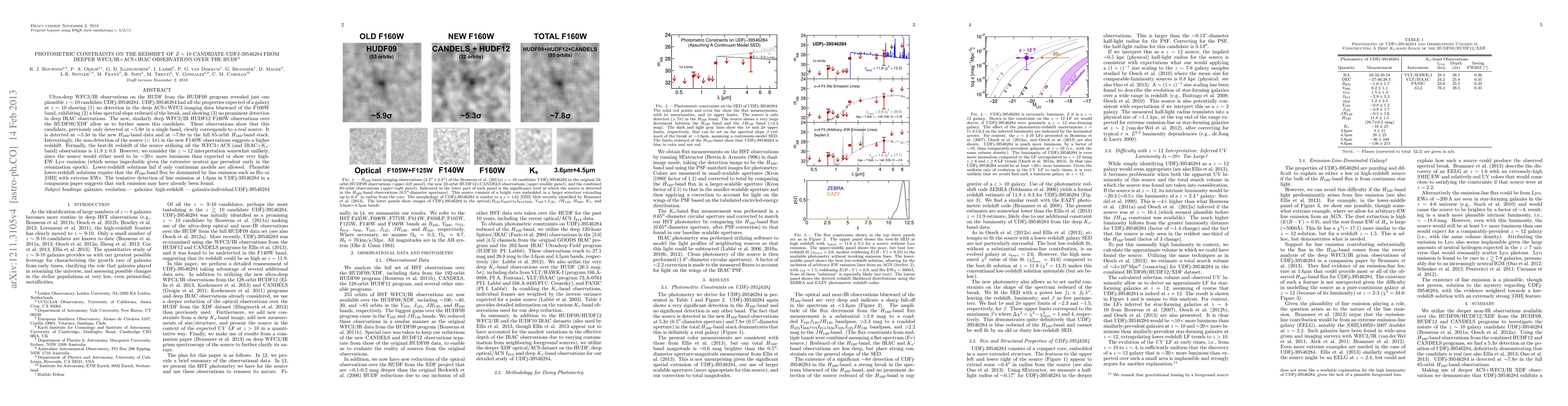This paper assesses the redshift of the z~10 candidate galaxy UDFj-39546284 using deeper WFC3/IR, ACS, and IRAC observations over the HUDF. The candidate is confirmed as a real source, with the best-fit redshift determined to be 11.8±0.3, though lower-redshift solutions are unlikely without extreme line emission scenarios.