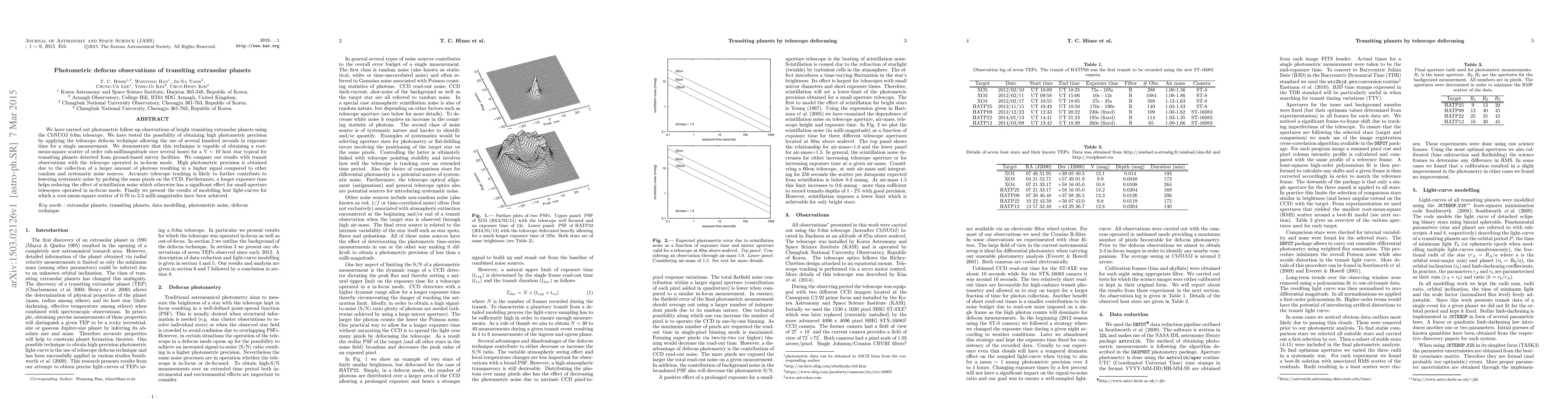 This paper reports on photometric follow-up observations of transiting extrasolar planets using the CbNUOJ 0.6m telescope with a defocus technique, achieving high photometric precision with sub-millimagnitude scatter over several hours. The method's success is attributed to longer exposure times and improved photon collection, reducing noise and scintillation effects.