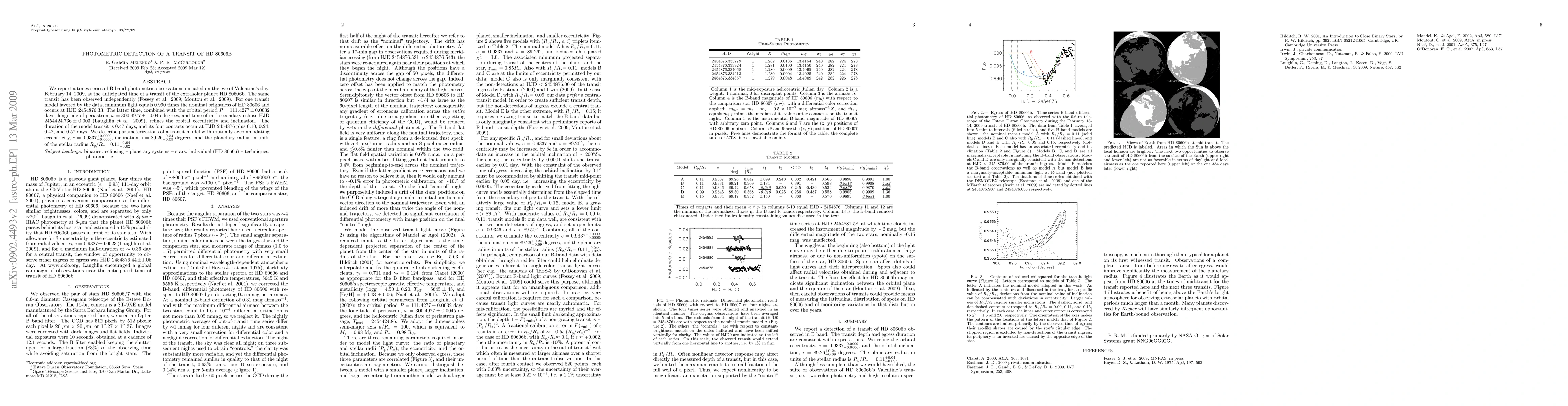 Researchers detected a transit of HD 80606b using photometric observations from February 2009, confirming previous findings and refining the planet's orbital parameters.