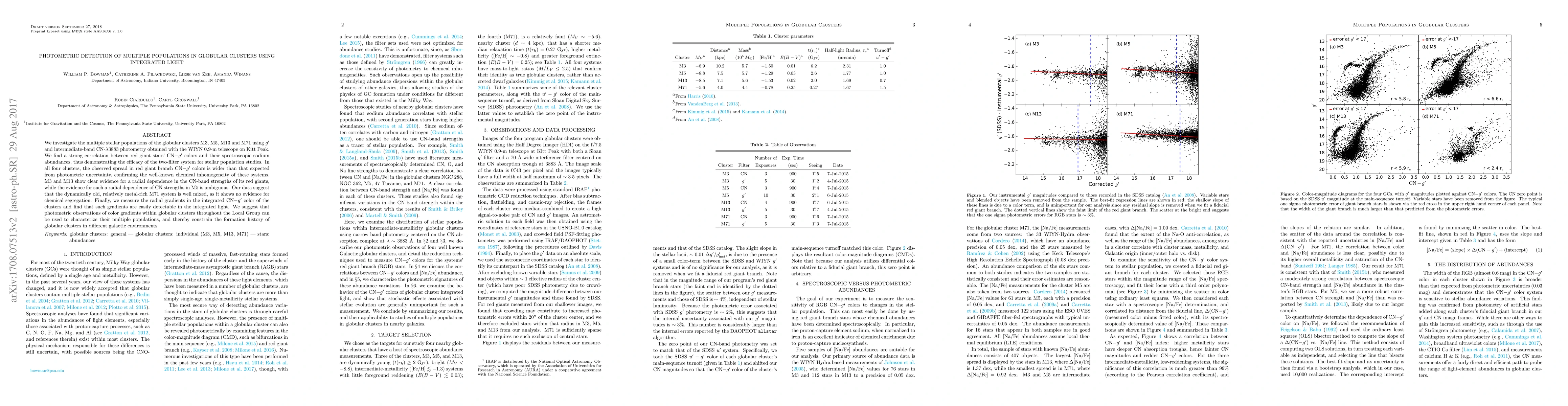 The study uses $g'^\prime$ and CN-$\lambda 3883$ photometry with the WIYN 0.9-m telescope to investigate multiple stellar populations in globular clusters M3, M5, M13, and M71.
