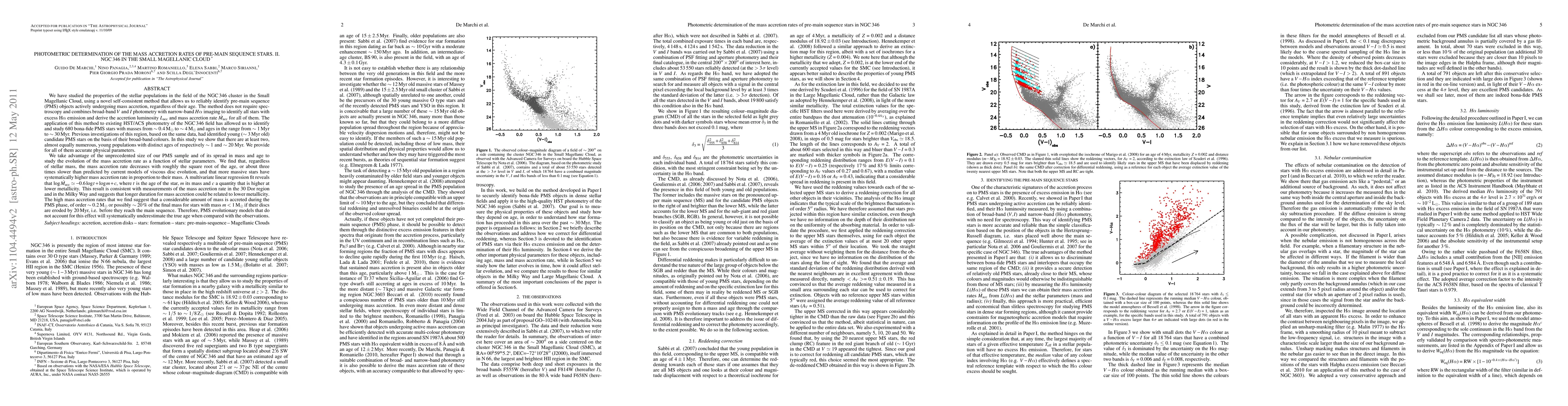 This study employs a novel photometric method to determine mass accretion rates for 680 pre-main sequence stars in NGC346, revealing two distinct populations: a young group (~1 Myr old) and an older group (~20 Myr old). The method combines V, I photometry, and Halpha imaging to derive accretion luminosities and mass accretion rates, suggesting significant mass accretion during the pre-main sequence phase.