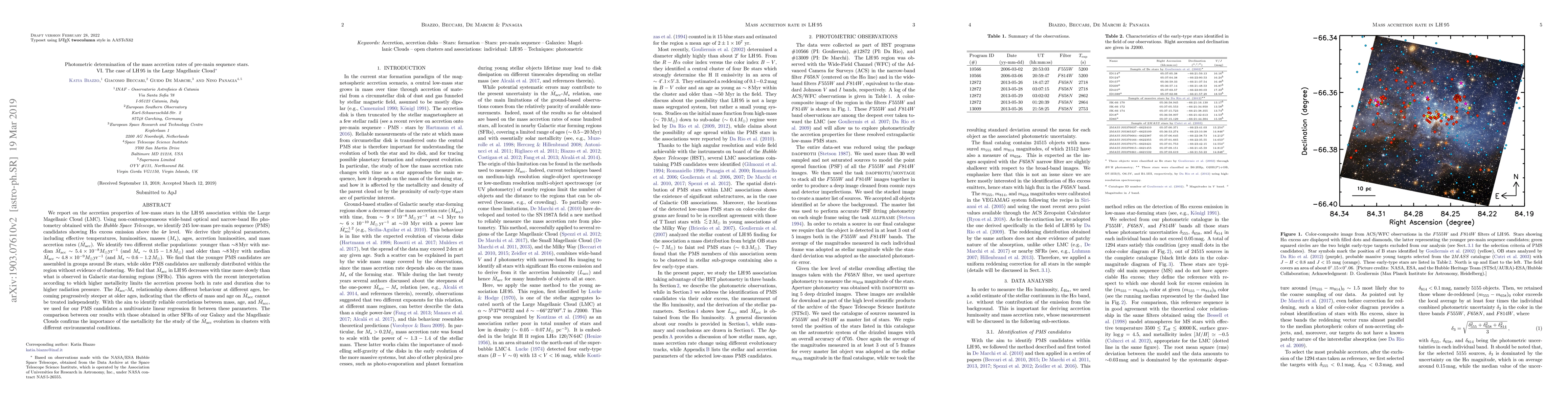 This paper investigates the mass accretion rates of low-mass pre-main sequence stars in the LH95 association of the Large Magellanic Cloud using HST photometry. It identifies two distinct stellar populations with differing accretion rates and distributions, suggesting that metallicity influences accretion processes.