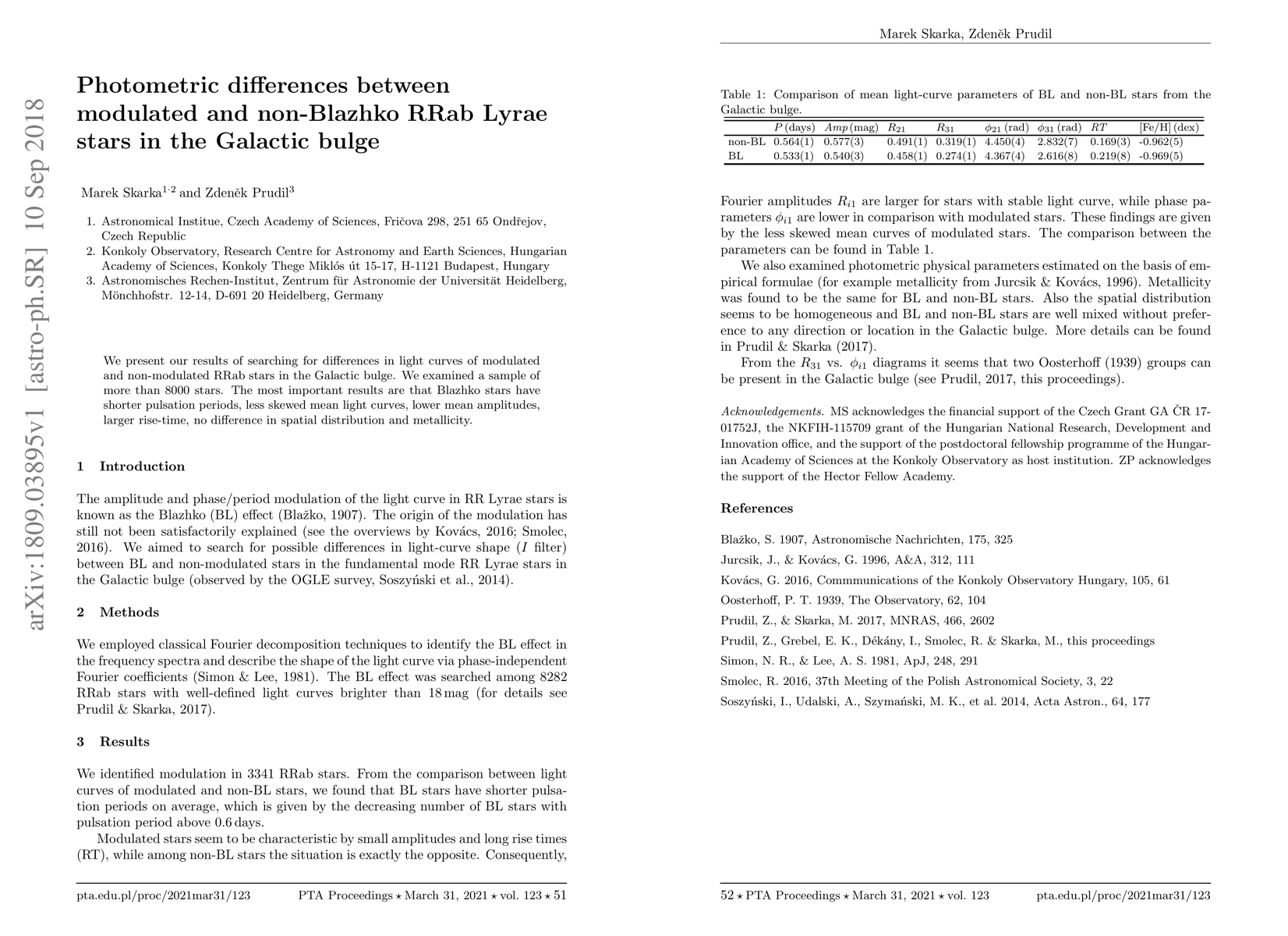 We present our results of searching for differences in light curves of modulated and non-modulated RRab stars in the Galactic bulge. We examined a sample of more than 8000 stars. The most important results are that Blazhko stars have shorter pulsation periods, less skewed mean light curves, lower mean amplitudes, larger rise-time, no difference in spatial distribution and metallicity.