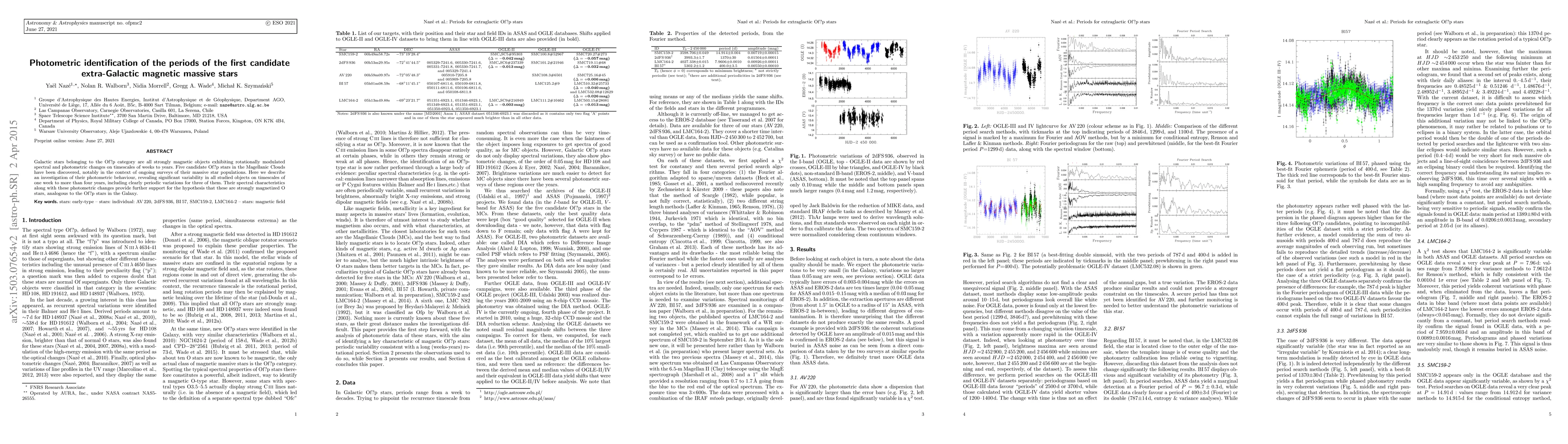 This paper investigates the photometric behavior of five candidate Of?p stars in the Magellanic Clouds, identifying significant variability and periodic variations in three of them, supporting their classification as strongly magnetized O stars similar to those in the Galaxy.