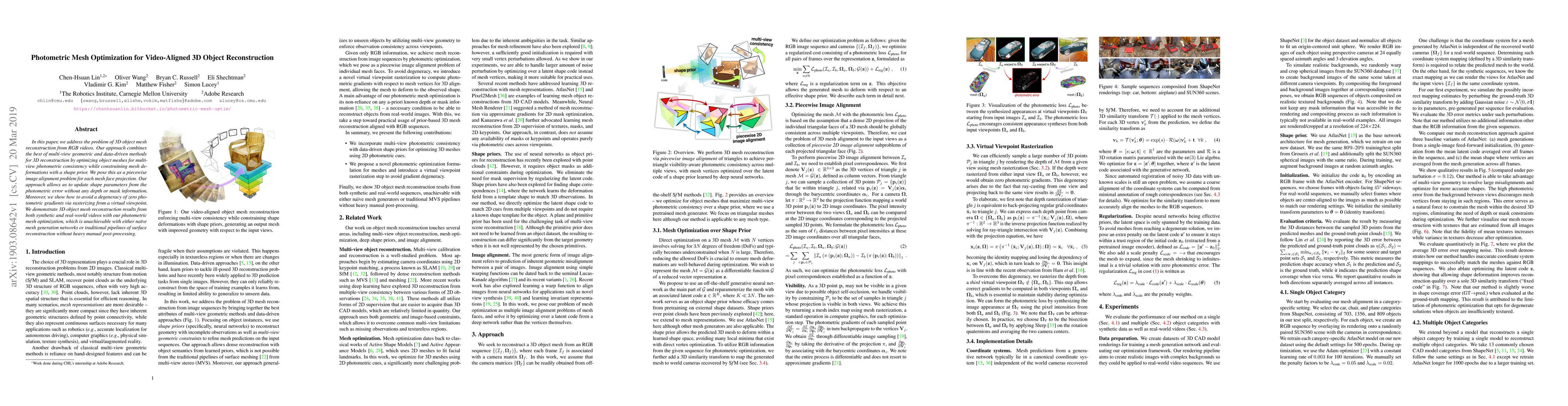 This paper presents a method for 3D object mesh reconstruction from RGB videos by optimizing for multi-view photometric consistency and constraining mesh deformations using a shape prior. The approach avoids zero photometric gradients through virtual viewpoint rasterization and achieves results superior to traditional reconstruction methods.
