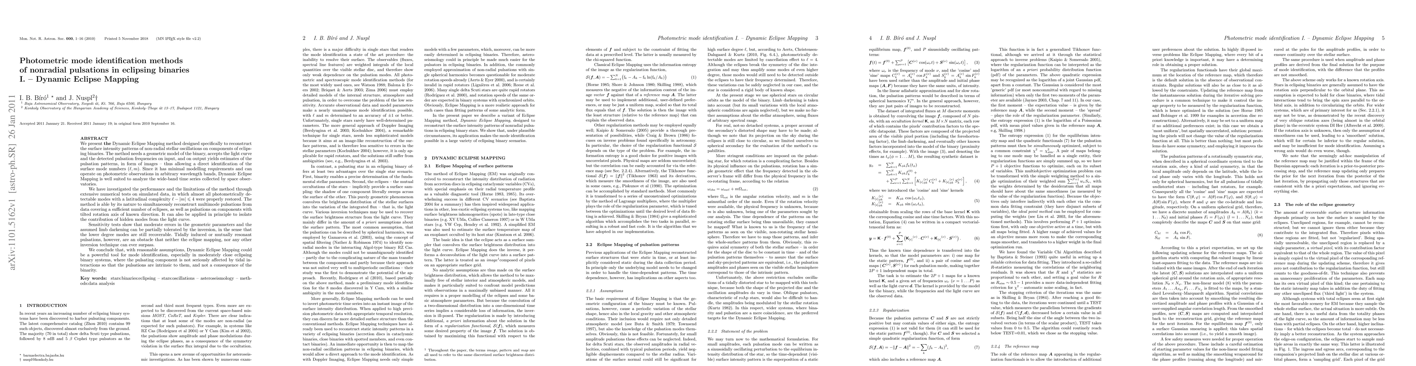 The Dynamic Eclipse Mapping (DEM) method reconstructs surface intensity patterns of non-radial stellar oscillations in eclipsing binaries, providing estimates of pulsation patterns and identifying mode numbers $(\ell,m)$. It is robust to moderate errors and effective for analyzing wide-band time series data, though it struggles with tidally induced or resonant pulsations.