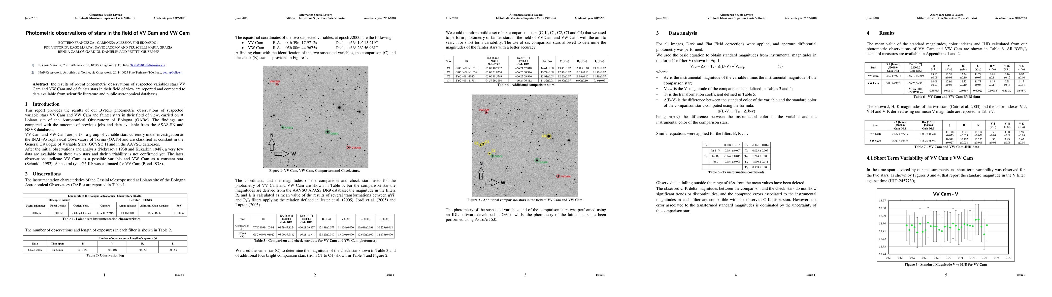 The results of recent photometric observations of suspected variable stars VV Cam and VW Cam and of fainter stars in their field of view are reported and compared to data available from scientific literature and public astronomical databases.